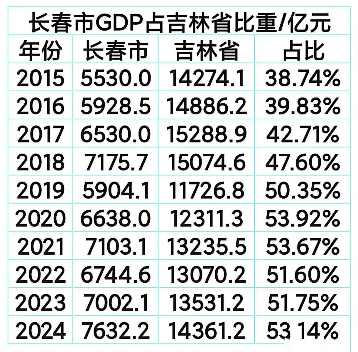 如果问四大老工业省会沈阳、长春、昆明、哈尔滨,哪一座的发展前景更好?那么大概率是沈阳排头、哈尔滨垫底,昆明GDP含金量存疑,长春不声不响的想要早些站上8000亿。 作为东北四个副省级城市、东北振兴四大锚点的“沈大哈长”之一,吉林省的希望承载地所在,长春的现实发展目标,就是先守住全国第40的排名,再向着上限合肥继续发力。 长春GDP什么时候可以跨过8000亿元? 2025年初,长春定下的年度发展目标是GDP增长5.5%以上,按此增速年末即可突破8000亿元。事实上,今年上半年长春的发展成绩相当不错,3754.88亿元的GDP,增速实现实际、名义双超越,而且,长春并没有类似山东城市那样的岁末突然停滞甚至回调的现象,GDP含金量也被认为相对较高。 再看上半年长春的经济发展细节,增速在副省级城市里排在前面,二产、三产增加值同比增速均高于全国均值,固投和规工也都表现优异,虽然基础数据不高,但趋势向好,对于现阶段的东北城市而言,向好的趋势更重要。 通常来讲,执行“强省会战略”的城市都是一边享受着全省资源的供给,一边小心地控制经济首位度不要太高,毕竟,四川第二绵阳和四川一哥成都之间隔了一整个南京GDP的段子并不好笑。但长春和吉林并没有这样的烦恼,长春已经高达53%以上的经济首位度,只略低于宁夏首府银川。2024年,长春常住人口占吉林总人口的39%以上,没有更多选择的吉林和长春,本身就是在相互成就。 3-4年内进入万亿GDP,长春稳了么? 在大连和沈阳之后,保持二产拉动、三产回暖态势的长春,多久才能成为东北的又一座万亿GDP城市? 长春有着自己的底蕴与优势。基础教育和高等教育全国闻名,位居科研前十更是长春的荣耀名片之一,只是长春需要把“产学研用”链条做得更通透。 东北人口持续流出的浪潮里,长春2024年实现了人口净流入,吉林人口外流并不耽误长春通过虹吸本省和辽蒙黑来实现人口微增。有说法是,东北振兴完全可以锚定沈大哈长做文章,人口、资金、资源统统砸过去作为支撑,长春看起来能够很好地完成任务。产业聚人、留人,长春产业正在摆脱颓势,奥迪新能源、氢能汽车、光电、医药等都是重要突破口,集聚起了一系列重点企业。 全国评选宜居城市,长春也有份入围,作为四大园林城市里唯一的北方城市,长春绿化一流、公园众多,春夏秋景致优美且舒适。科教文卫方面,长春完全可以和郑州、合肥、福州等城市媲美。 顶层设计也对长春有所倾斜,2020年公主岭划归长春,类似的合并式扩张是合肥、西安、成都、济南等万亿GDP城市才有的待遇,如今的新定位更是对长春赋予重任。 最后,守住现有位置就是成功,长春还有排名继续向前的可能么?这得看后面其他城市的增速与增量,与其身处同一梯队的经济大省腰部城市和资源型城市,发展势头更加迅猛。