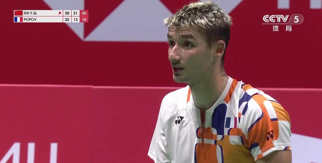巴黎羽毛球世锦赛男单1/8决赛,石宇奇对阵东道主新星小波波夫,在主场观众的助威声