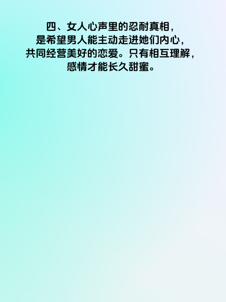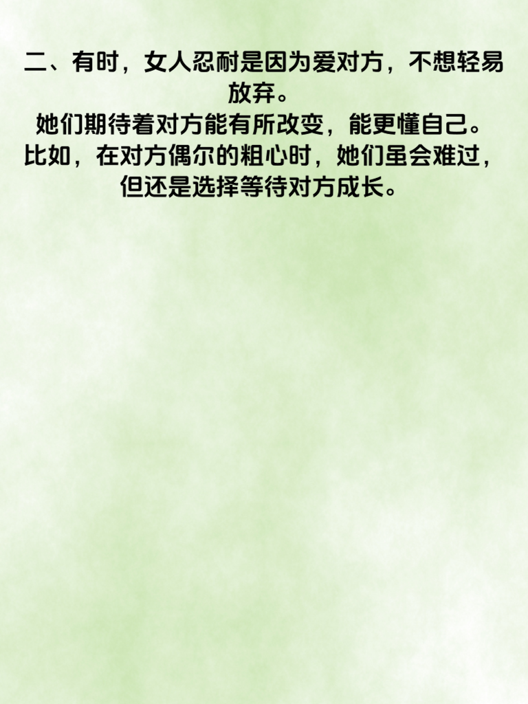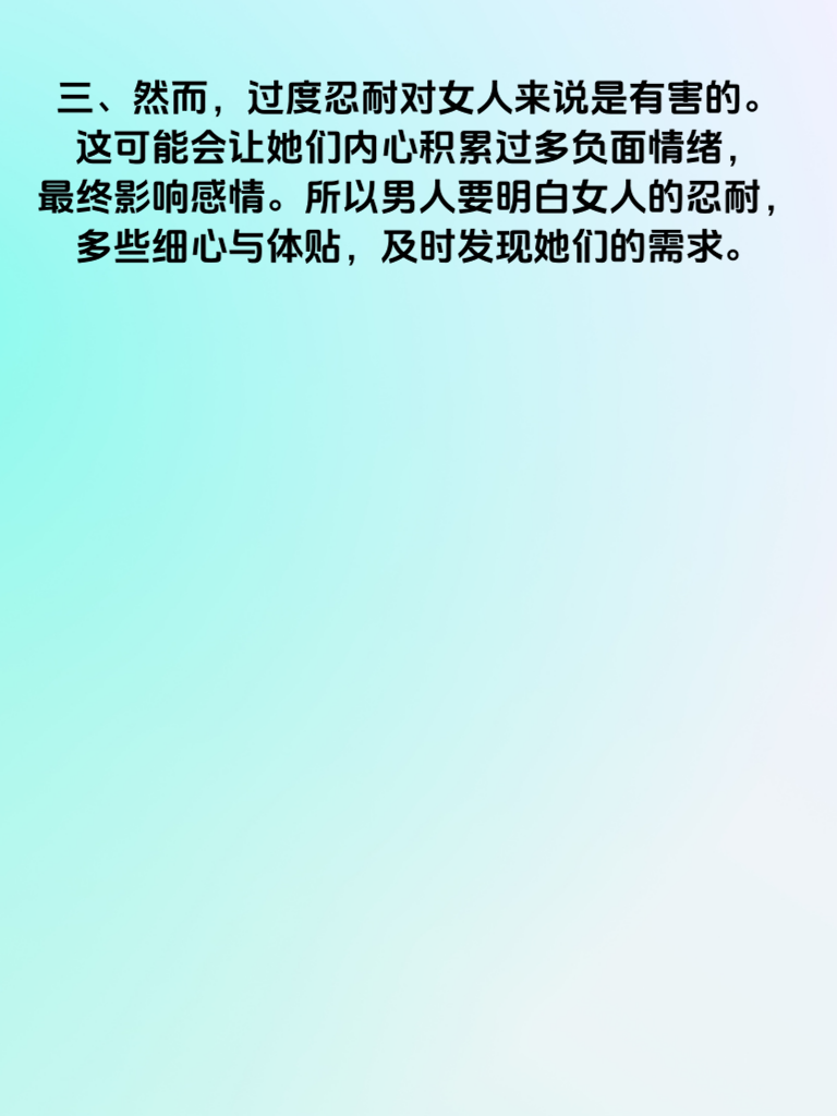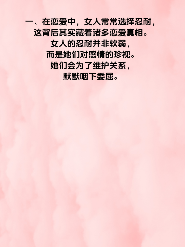 一、在恋爱中,女人常常选择忍耐,这背后其实藏着诸多恋爱真相。女人的忍耐并非软弱,而是她们对感情的珍视。她们会为了维护关系,默默咽下委屈。 二、有时,女人忍耐是因为爱对方,不想轻易放弃。她们期待着对方能有所改变,能更懂自己。比如,在对方偶尔的粗心时,她们虽会难过,但还是选择等待对方成长。 三、然而,过度忍耐对女人来说是有害的。这可能会让她们内心积累过多负面情绪,最终影响感情。所以男人要明白女人的忍耐,多些细心与体贴,及时发现她们的需求。 四、女人心声里的忍耐真相,是希望男人能主动走进她们内心,共同经营美好的恋爱。只有相互理解,感情才能长久甜蜜。