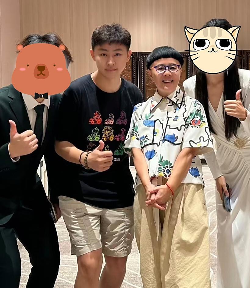 59岁金龟子和粉丝一起合影,她还是留着锅盖头,穿衣打扮像儿童,整个人看着像小学生