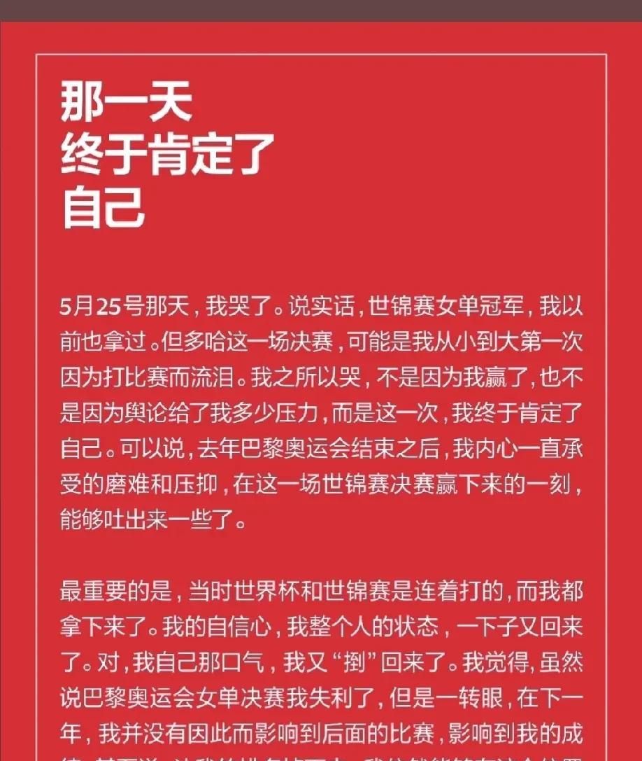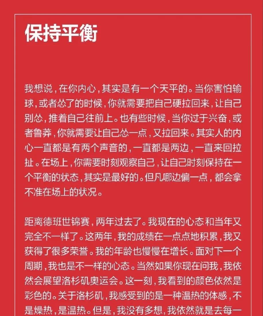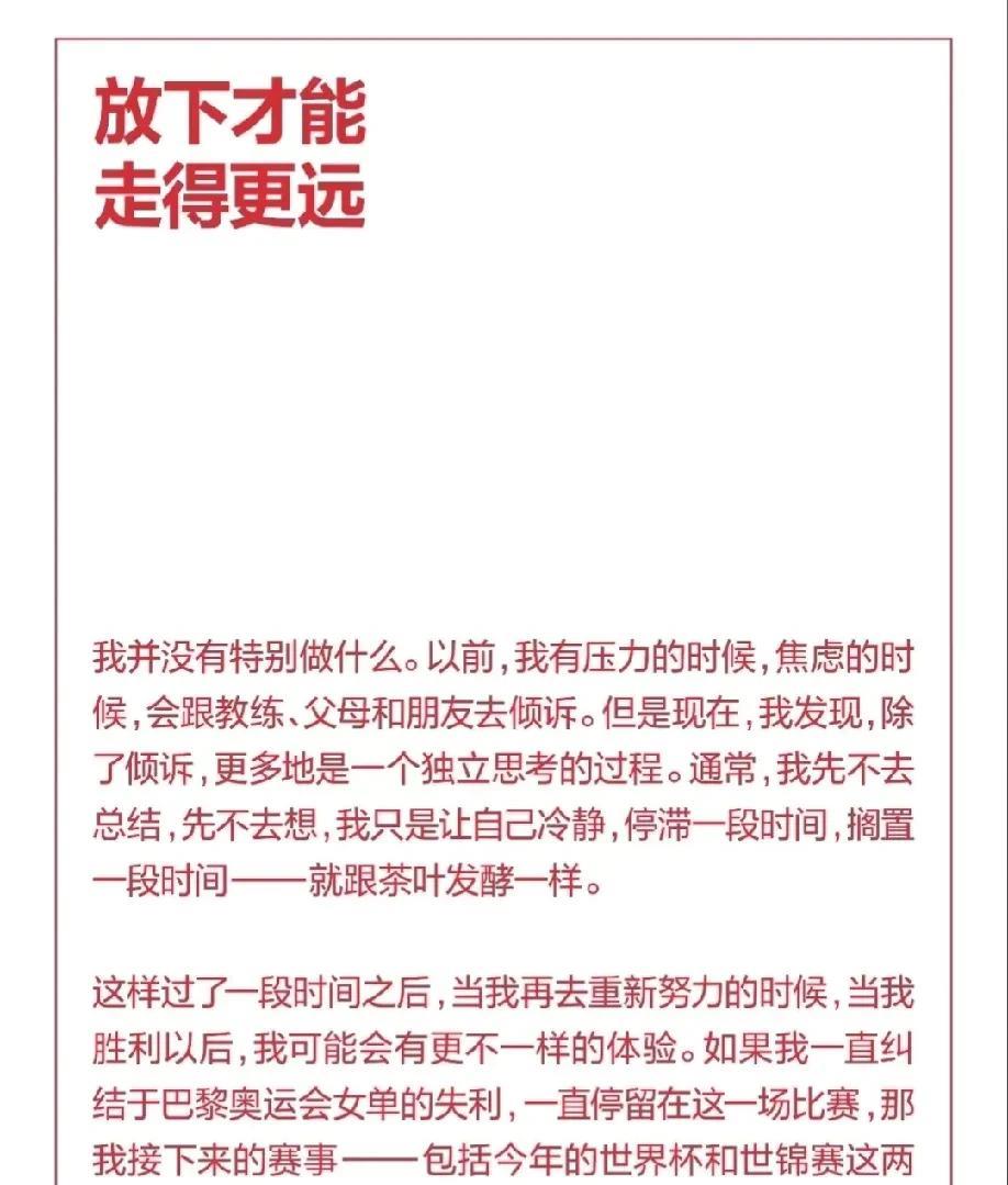 莎莎新杂志的采访,印证了成都封训时的猜测——她没有走出来。在世乒赛之前她确实是压