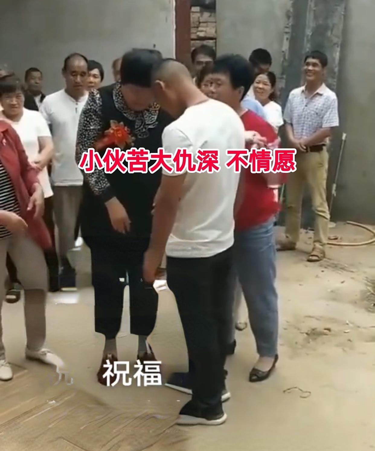 近日,湖北27岁小伙结婚,娶42岁大姐,只花了3万,婚礼现场,小伙一脸苦大仇深不