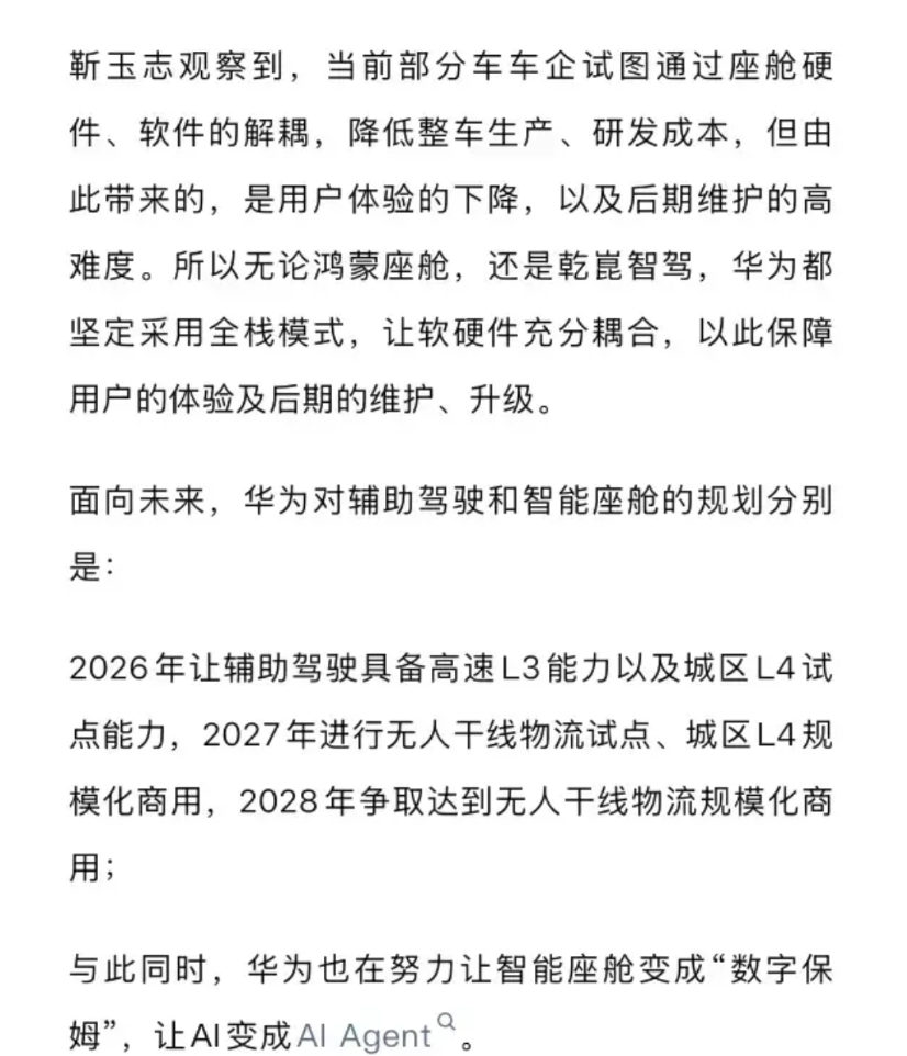 华为智驾又选择了一条比较难的技术路线。 华为的靳玉志称,世界模型才是智驾系统未来
