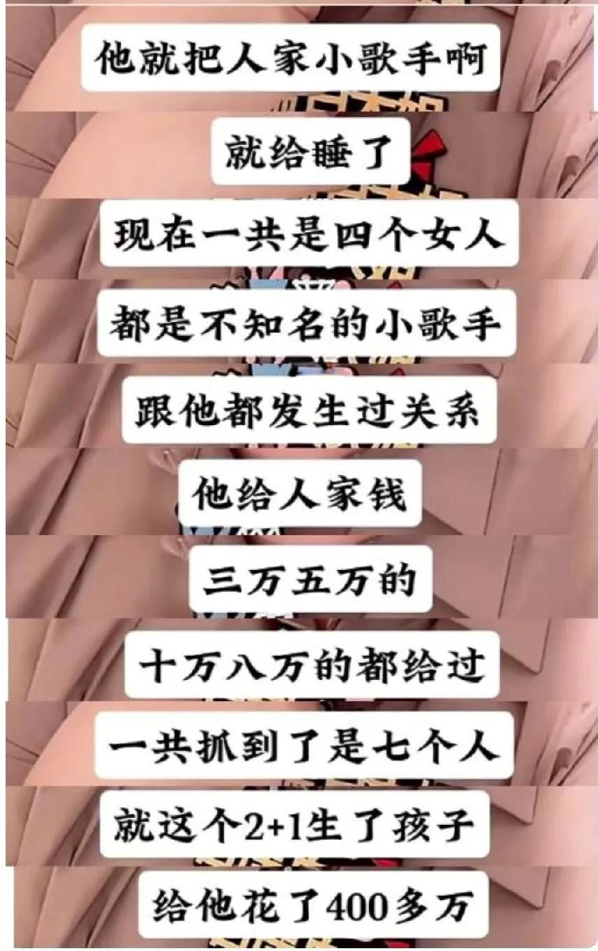 没跑了,韩磊这个丑闻估计要实锤了! 原因就是原配发生锤人了。 昨天晚上,有一个女性深夜连麦家庭治疗师白瑞。 她说今年42岁,她老公比她大12岁,是个歌手,2014-2016年间最火。那段时间,他睡的小歌手有四个人,他还给女的钱,十万八万的。然后有一个2+1是主动找他的,已经怀孕了,亲子鉴定也做了。 有网友说,这个连麦的女人很可能就是韩磊的老婆。 韩磊跟他老婆就是老夫少妻,生了一对儿女。本来韩磊应该是婚姻生活很幸福的,因为他的娇妻特别漂亮,被称为蒙古之花。对他又好。一儿一女,完美无瑕。 如果韩磊出g这个事情是真的话,那还真让人想不明白了: 一个男人娶了这么漂亮的女人,儿女双全,难道不应该好好珍惜吗?为什么还要在外面沾花惹草呢?难道真的是“家花不如野花香”吗?#韩磊# #韩磊报警#