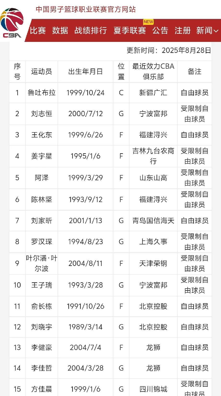 新疆中锋在列,宁波成功捡漏… CBA自由球员名单于28日更新,新疆内线鲁吐布拉新
