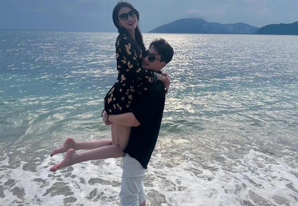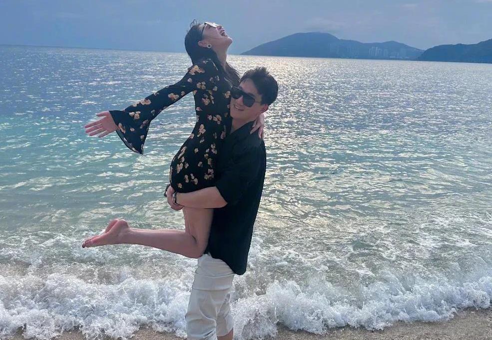 张馨予甜蜜秀恩爱照,穿短裙被老公臂弯抱