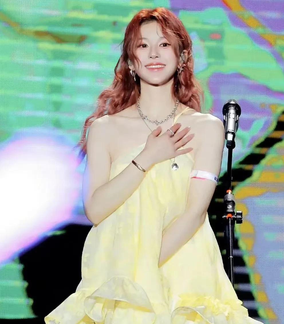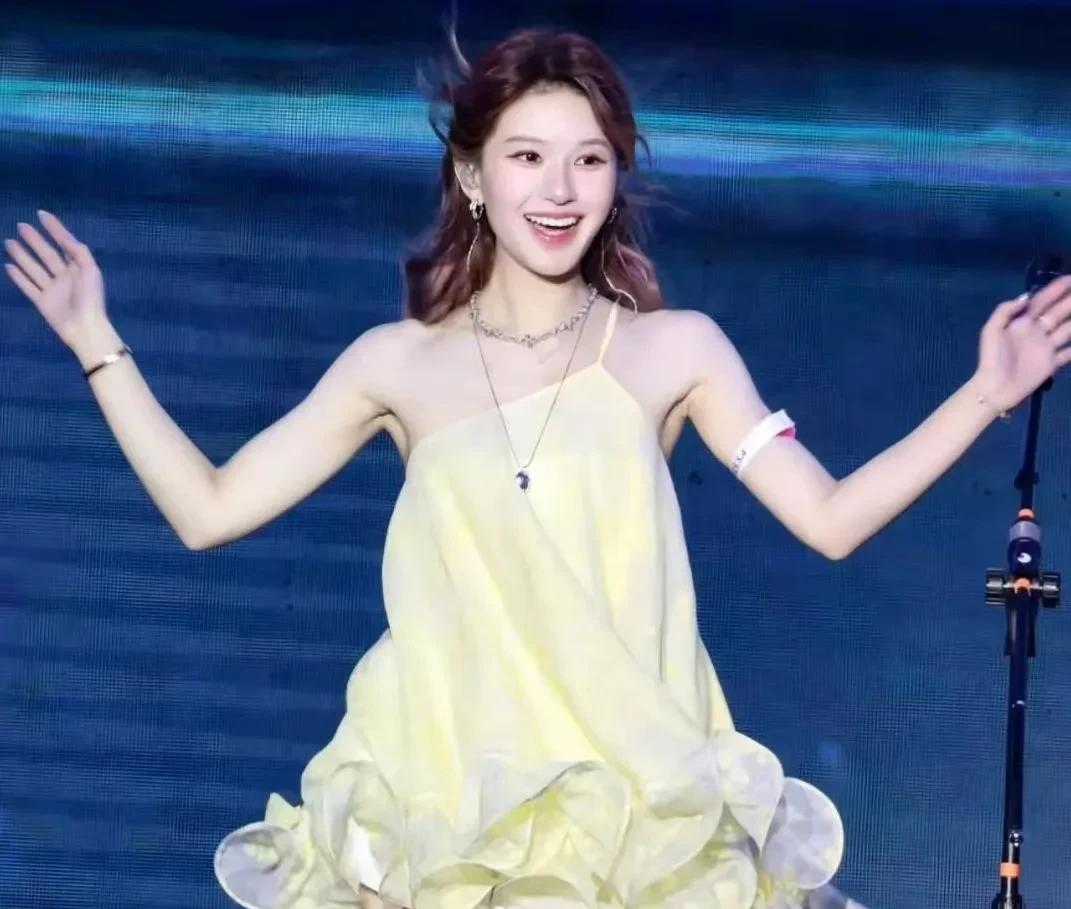 赵露思一袭黄色长裙亮相,鹅黄色花苞裙太抢眼,皮肤状态令人羡慕