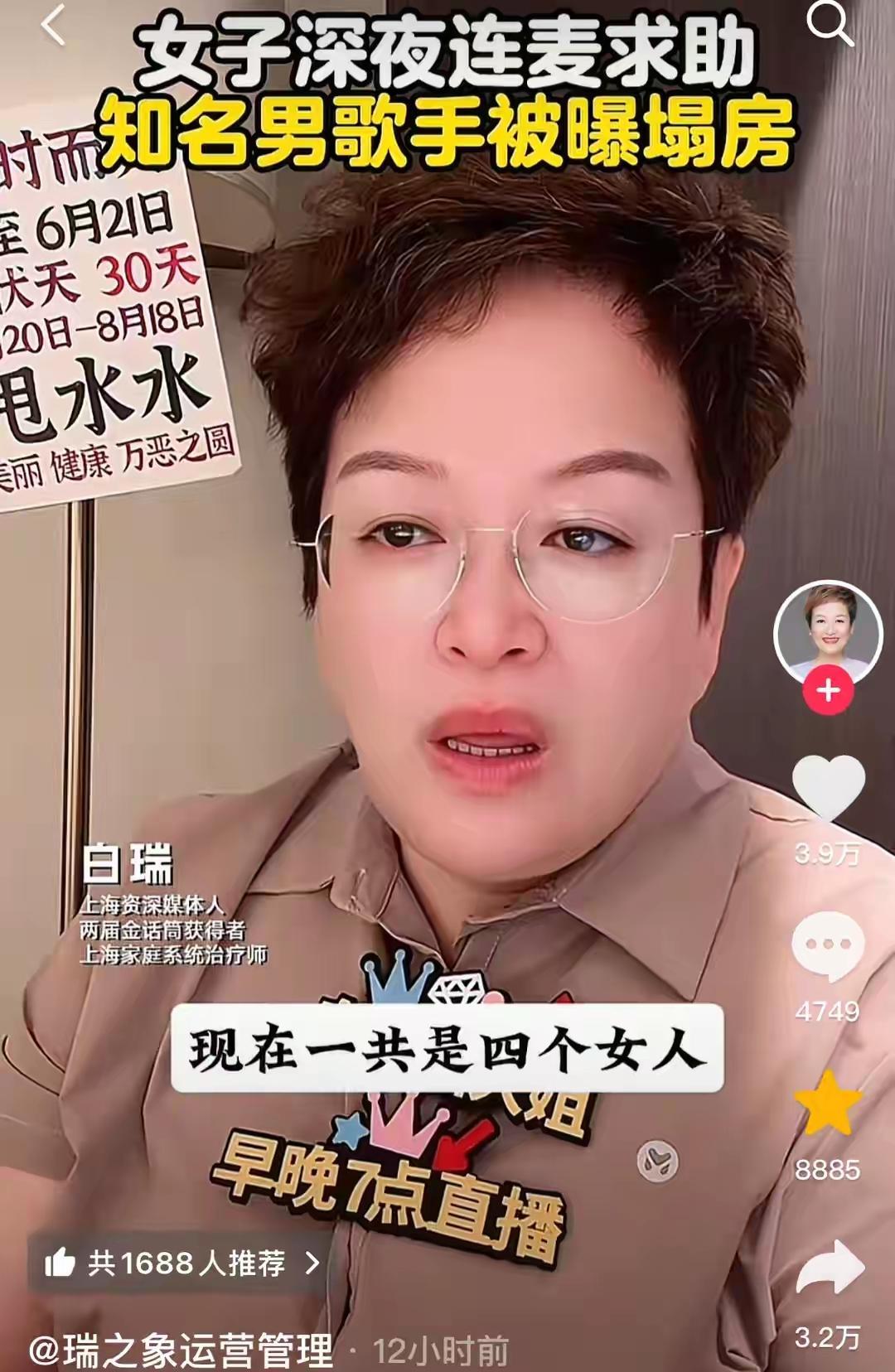 都说近朱者赤近墨者黑,看看韩磊交的朋友,就可以看出他私下里的为人是什么样的。 听说那个叫白瑞的女主持人也将受到牵连,正所谓无风不起浪,虽然我不喜欢白瑞,但是这次站白瑞,她不可能为了蹭流量曝光韩磊,估计韩磊看事情闹大了,怕自己完蛋了,说服傻老婆来保全他!
