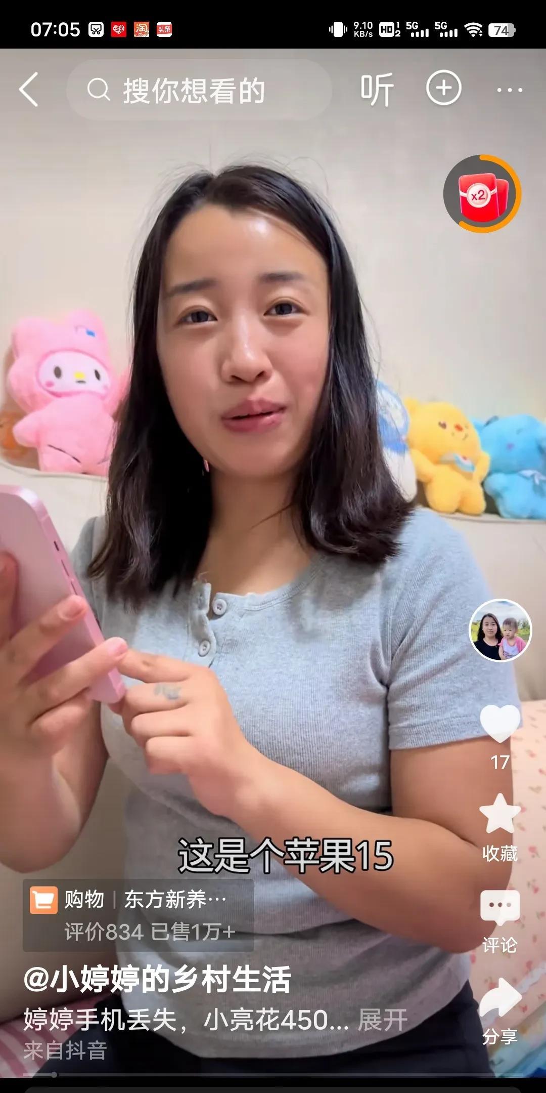 小婷婷丢手机这事儿还挺有戏剧性。小亮花4500元给她买了部粉色苹果15,看得出是