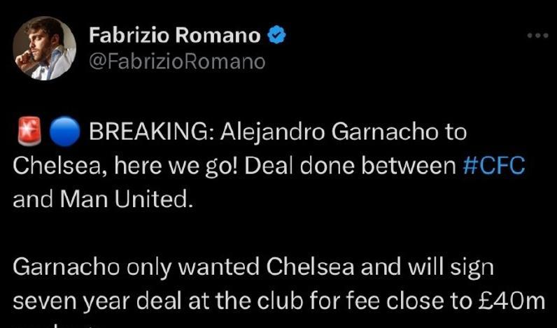 曼联4000万英镑卖加纳乔,有3大利好! 据罗马诺透露,加纳乔即将以4000万英