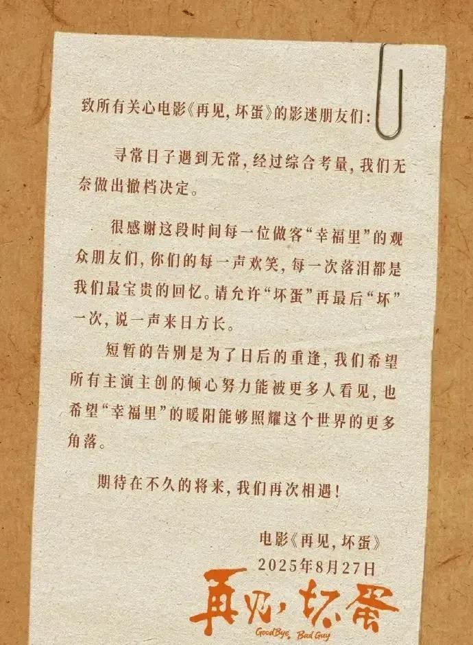 吴京的坏蛋撤档了,只上映了6天,票房仅26.7万元,不及一个草台班子拍的短剧的流