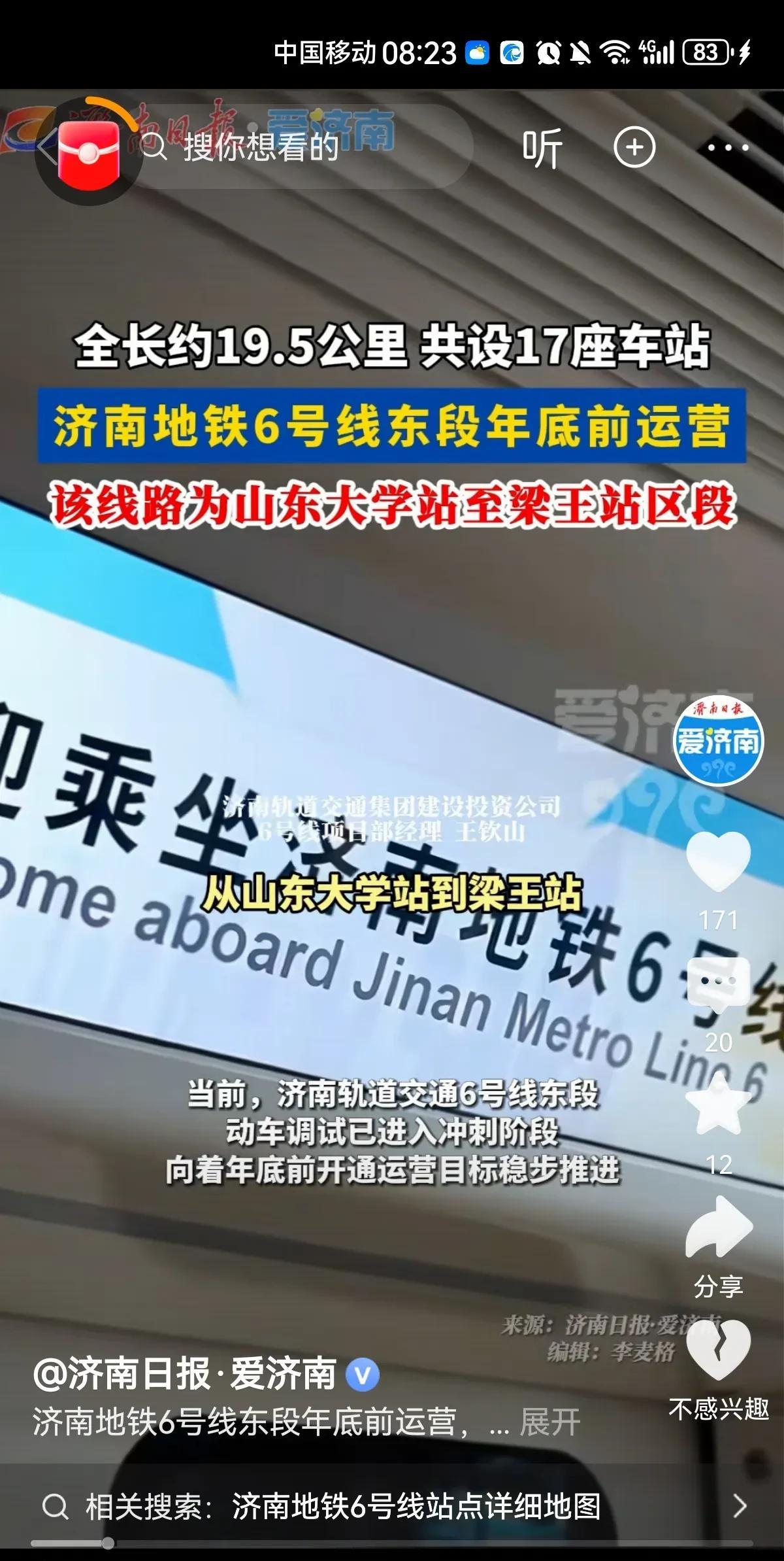 四线齐发:济南轨道交通年底迎来爆发,这波福利要来了 济南地铁年底“四线齐发”,着实令人翘首以盼! 地铁4号线:本周末开启空载试运行,预计2025年底开通运营。它是沿经十路铺设的东西向交通主干道,全长40.3公里,设有33座车站。 地铁8号线:一期工程西起邢村站,沿经十东路延伸,途经历城区、章丘区,贯穿东部新城、章丘大学城,东至清源大街站,大致呈东西走向。一期工程全长25.5公里,共设14座车站,其中高架车站11座,地下车站3座。 地铁6号线东段:进展斐然,已完成长轨通等关键节点任务,动车调试进入冲刺阶段,年底前有望开通。东段全长约19.5公里,设有17座地下站。 济南云巴:已正式启动为期3个月的空载试运行,预计12月初开通运营。首条线路为高新东区环线,线路全长约30.7公里,跨越高新区和历城区,共设32座车站,其中换乘站5座,可与济南轨道交通2号、4号、8号线换乘。 如此一来,轨道交通组网成形,年底值得期待! ~end~ #晒图笔记大赛#