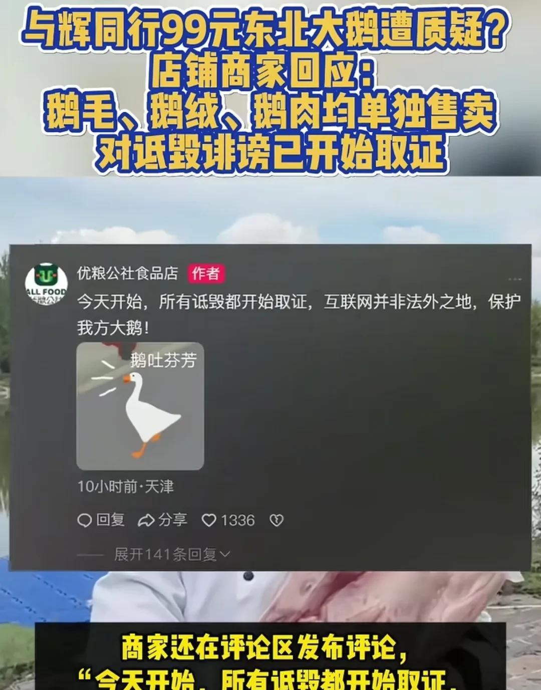 同样是董宇辉被黑,东北人的硬刚跟河北人的沉默形成了鲜明的反差。说实话,第1次看到商家出面辟谣,东北老铁干事就是敞亮! 董宇辉黑龙江行卖的大鹅一只6~7斤,99块钱,被一些无脑黑子硬喷,说这么便宜的鹅肯定是只养了60天的速成鹅,还说鹅身上有斑斑点点的血迹,肯定是病鹅。 面对这样的恶意诋毁,售卖大鹅的厂家马上绝地反击。人家说了自己的鹅是集团化养殖,不像你自己家单独饲养的一只两只,并且人家前期的鹅毛,鹅绒,单独售卖,已经赚到钱了,鹅肉纯属附属经济。 有60天就能出栏的鹅?商家说了:育雏都得20多天。 至于大鹅上面有一些斑斑点点,都已经被斩杀了,有一些斩杀痕迹不正常吗?怎么就说是病鹅呢? 要我说黑子就被吹毛求疵了。你买到鹅肉了吗?铁锅炖大鹅的味道你闻到了吗? 我看你是键盘一敲,就想指点江山。 实际情况是:买的没意见,卖的没意见,敲键盘的反倒意见一大堆了。 好不好的,自己先买一单试试,看看人家养了180天的林间飞禽到底是什么味道再来下结论。 我看有人是专门开号来黑呀。一个女的,刚刷到她的时候就两作品,全部是说大鹅有问题的,大家让她晒订单,她却置之不理。这样,其心可诛了。 这次东北商家回怼黑子,比上次河北围场土豆事件来的有力多了。东北人确实实在,有事是真上啊。说实话,这是第1次看到商家出面辟谣,东北老铁做事就是敞亮。 不过经过黑子们这么一闹,东北大鹅彻底火了。上次没买到的朋友,要求赶紧返场。反正东北的我是买到了,已经炖了两次,那是嘎嘎香啊。 下次我不仅买鹅,还得买他家的羽绒服,气死黑子[我想静静][我想静静]