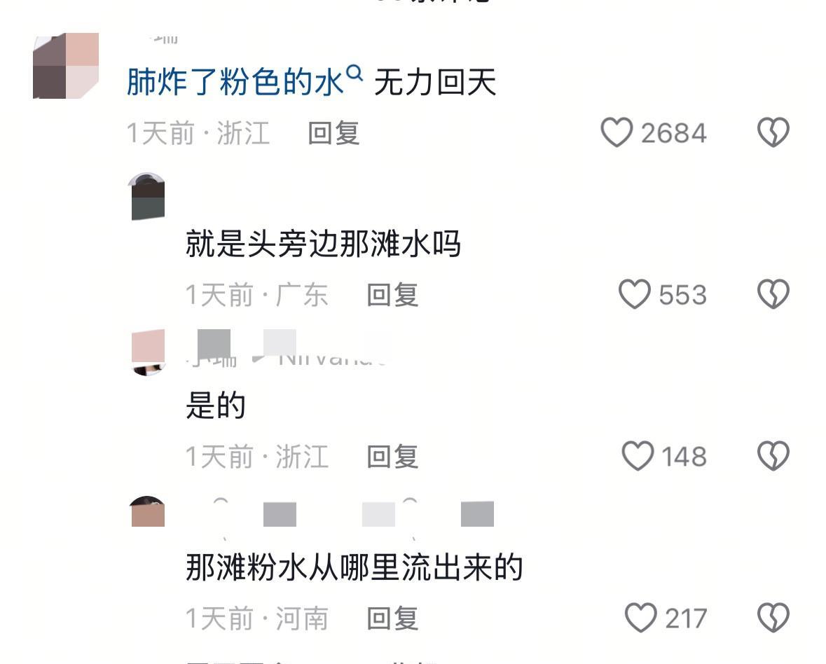 呛到大量的水进肺了,然后经过抢救按压水把肺胀烂了再压挤出体外就会是粉色。