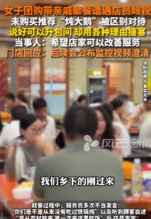 “太欺负人了”河南信阳,博主的母亲,生病住院,需要高昂的医药费,多亏了家里亲戚的帮衬,博主过意不去,请亲戚们吃一顿便饭。谁能想到,竟然被铁锅炖老板带头“冷嘲热讽”,博主想订个包间,老板说要用包间得点5斤大鹅才行。她为了省钱,说亲戚不爱吃,最后只能分两桌在大厅坐。服务员带着鄙夷问:“你们是不是第一次来?没吃过我们的大鹅吧?”又问:“餐具1块钱一个,要吗?” 8月中旬的河南固始县,夏末的阳光透过铁锅炖店门口的红色帘子,落在略显斑驳的砖地上。博主小文带着父母走进这家本地小有名气的铁锅炖店。 母亲因病住院,家里凑齐了昂贵的医药费,已经是亲戚们热心帮衬的结果。 小文心里一直过意不去,于是想着,母亲虽然身体虚弱,可亲戚们专程来看望,不如请他们吃顿饭,聊聊天,也算报答大家的关心。 她提前打了电话订座,想要一个安静的包间,方便大家说话。没想到,电话那头的老板却语气里带着笑意和几分轻蔑:“包间啊?包间得点5斤大鹅才行。” 小文愣了愣,她犹豫了一下,心想,亲戚们大多年纪不小,也不是什么大食量,如果点那么多,不仅浪费,还得花上不少钱。 无奈之下,她只好放弃包间的想法,决定在大厅安排两桌,尽量让亲戚们舒服些。 到了店里,大厅人声鼎沸,炖锅的热气夹着浓郁的香味弥漫开来。小文安排好两桌,父母坐在一桌,其他几位亲戚坐在另一桌。 母亲面色苍白,但看到大家来陪自己,嘴角微微上扬,眼里闪着感激的光。小文心里暗自叹气:幸好大家来了,不然她母亲一个人住院,心里肯定更孤单。 菜上齐后,刚准备开动,却发生了小插曲。桌上一位亲戚因为手忙,筷子滑落到地面上。 小文本想赶紧捡起来,没想到,一个服务员凑过来,眼神里带着明显的轻蔑:“你们是不是第一次来?没吃过我们的大鹅吧?” 声音不大,却足够刺耳,让整个桌子的气氛瞬间紧张。小文心里一紧,低声道歉:“对不起,筷子掉了,我帮您捡。” 服务员没有直接拿走掉落的筷子,而是继续用那种几乎带有讽刺的语气:“餐具1块钱一个,要吗?” 她的语气像是一把锋利的刀,在小文心里划开一道疤痕。小文心里一阵懊恼:自己只是想请亲戚吃顿饭,哪想到会遇到这种尴尬局面。 亲戚们也面面相觑,有的低头夹菜,有的忍不住交换了几句无声的眼神。 小文强自镇定,尽量微笑着安慰大家:“没事,这里服务可能比较特殊,我们尽量别在意。”可心里的难受却无法掩饰。 她看着母亲,母亲眼中闪过一丝不忍,轻声说:“孩子,没关系,我们吃就好。”小文握了握母亲的手,强忍着泪水,生怕母亲看到自己的情绪。 整个用餐过程中,服务员的态度仍然带着挑衅和高高在上的味道,每次上菜都伴随着或轻或重的冷嘲热讽。 这顿饭持续了将近一个小时,期间小文尽量调节气氛,给亲戚们倒茶、夹菜、讲笑话,但大厅里服务员投来的轻蔑眼神像无形的针,不断刺在心上。 散场时,账单被服务员冷冰冰地放在桌上,语气里仍带着微微讥讽:“总共多少?自己算吧。”小文付完钱,心里如释重负,却也无比愤懑。 几天后,小文把整个经历写成文字和视频分享到网上,描述了母亲生病、亲戚相助、铁锅炖店的冷嘲热讽以及用餐中遇到的尴尬细节。故事一经发布,立刻在网络上引起轩然大波。 网友们看到小文分享的经历后,纷纷在评论区表达对她和家人的同情。 有人说:“母亲生病住院,家里还要凑医药费,本想请亲戚吃顿饭表示感谢,竟然遭遇这样的冷嘲热讽,真的太心酸了。”还有人感叹:“这家店不能去。” 一些网友更关注铁锅炖店的服务态度,有人直言:“消费不只是为了吃到菜,而是体验尊重和温暖。服务员用鄙夷的语气和额外收费的方式对待客人,这让人很反感。” 还有人指出:“点个包间还要被强制点大鹅,这种规定明显缺乏人情味,也不够灵活,实在让人难以理解。”