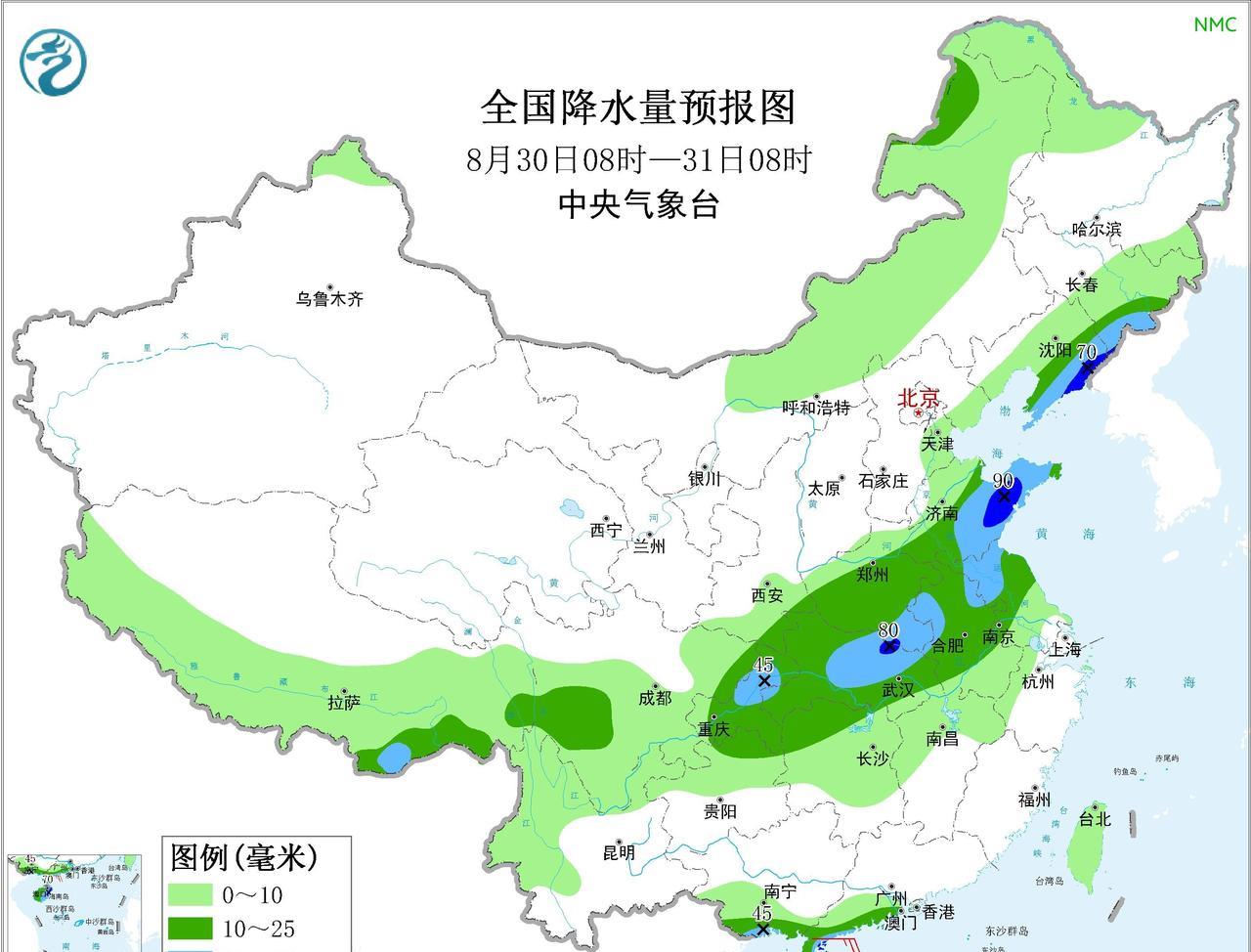 未来三天,雨带持续南压,从陕南黄淮南落至长江中下游地区。同时,南方高温区域显著缩