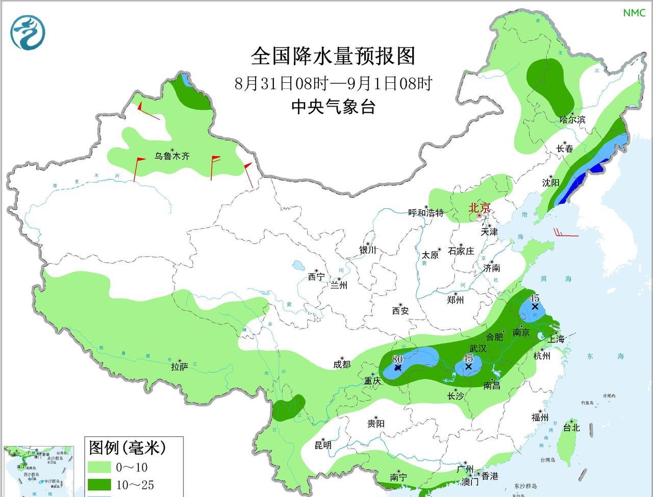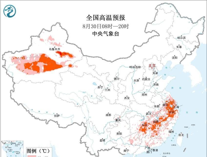 未来三天,雨带持续南压,从陕南黄淮南落至长江中下游地区。同时,南方高温区域显著缩减,迅速土崩瓦解。对应副高南退和北侧高空槽东移南伸,弱冷空气联合降水打压所致。此外在暖高压脊返场下,新疆一带的干热高温再度开启来袭,吐鲁番盆地和南疆盆地局部可达40度以上。