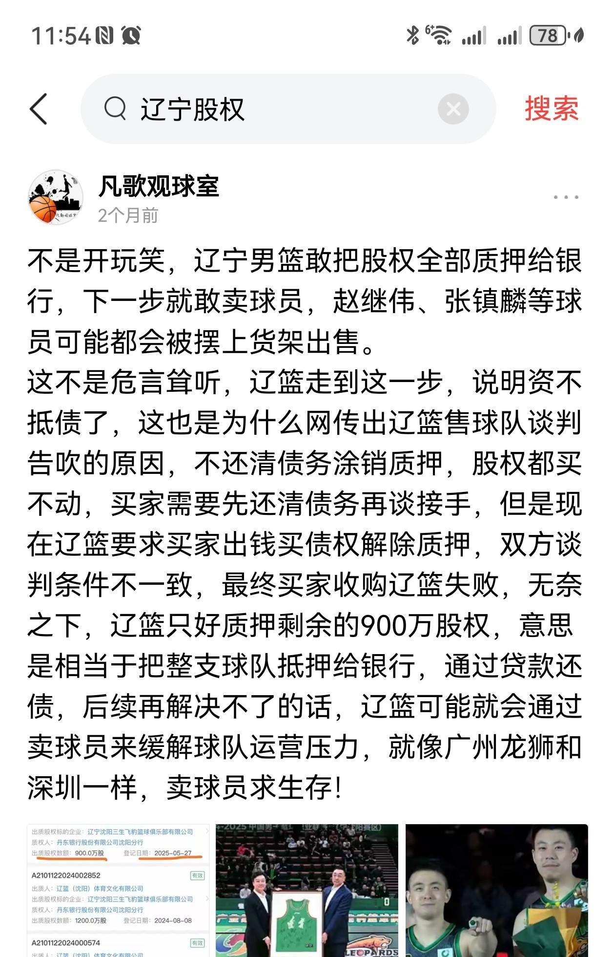 为啥辽宁这么着急卖张镇麟? 其实就一个原因,辽宁很缺钱! 现在赵继伟30岁,李晓旭35,韩德君38,根本就卖不出,只有张镇麟卖得上价格。有说上海直接给8000万,这基本上可抵辽宁两,三年消耗(加上门票收入),因此,辽宁拒绝要李弘权等球员,只要现金。其实,辽宁想一起卖掉付豪,可问了一圈,没人要[捂脸]。 其实,辽宁财务出问题,下面这个博主一直在报,但无奈辽宁自媒体太多了,都在说这个博主造谣,所以,没啥热度。其实,辽宁母公司把辽宁的股权全部抵押了。现在是管你妈妈是谁,断臂求生最重要。 有趣的是,被辽宁球迷嘲讽了五年的广东宏远今年母集团似乎缓过来了,大手笔引进焦泊乔和崔永熙,向总冠军发起冲锋。相反,未来五年辽宁进四强难上加难,辽宁球迷可能要忍受以前广东面临的苦楚了[灵光一闪]。