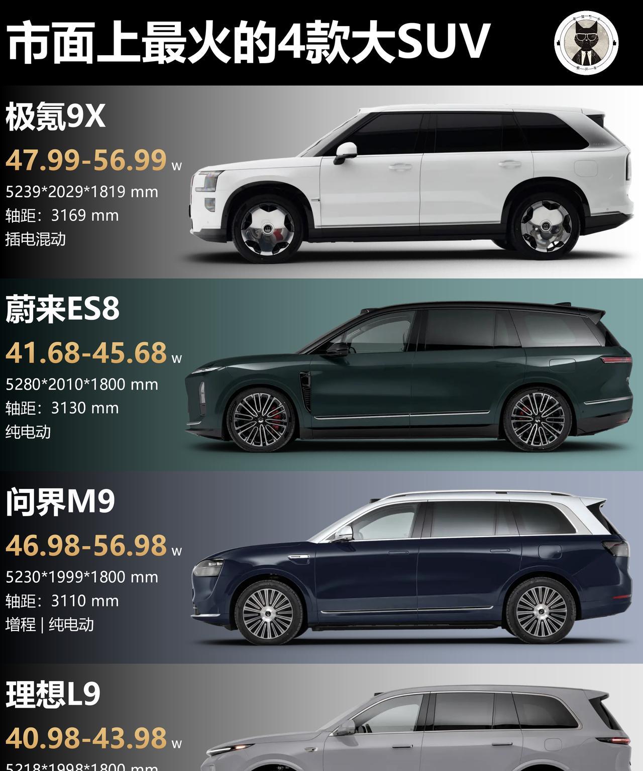 极氪9X预售价格配置整理出来了,真⊙一图看懂,另外还罗列了一下现在好火的大SUV们,你们觉得9X是贵了还是便宜了?另外从气质上来说,极氪9X和尊界似乎比较搭,正好和蔚来走了不同的路线,奢华尊贵vs科技豪华,你会怎么选? 参数来源:极氪发布会及公开平台【来自懂车帝车友圈】