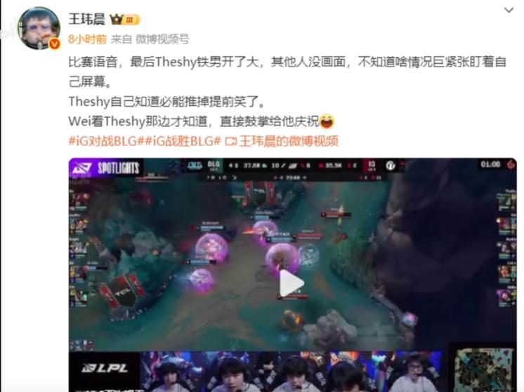 IG零封BLG一刻众生相 小WEI窥屏后鼓掌 中下辅三小只紧张 Shy哥聊发少年狂! 恭喜IG2比0横扫BLG实现对BLG的双杀! 极粉游龙了!到底谁是小丑? 悬案破案了!台风到底救了谁? Shy哥开心了!谁说铁男不好玩? 第二局最后一波多搞笑啊! Shy哥铁男开大关人偷塔,远端的中下辅不知道能不能一波紧张兮兮;隔壁的WEI窥屏后笑嘻嘻;胸有成竹的shy哥已经提前开始振臂了! 爽!很久没有看到这么开心的shy哥了! 该说不说,IG目前这状态,季后赛前二真有机会吧?[憨笑][憨笑][憨笑]