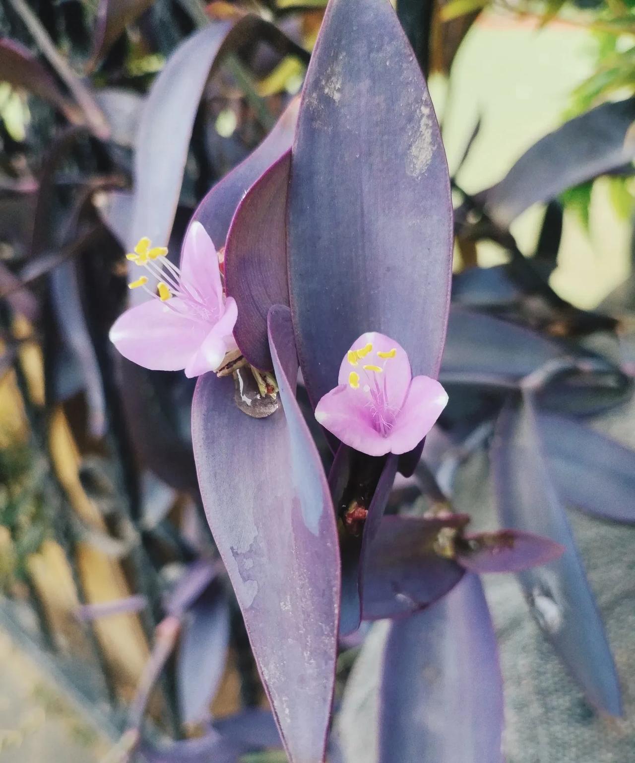 #随手拍张图,分享美好瞬间#雨后的紫竹梅,静立在墙角。周遭一片绿意盎然,唯有它透着独特的紫——那抹紫自带高贵典雅的气质,粉紫色的小花像精致的宝石,巧妙地嵌在紫叶间。比起周边姹紫嫣红的月季,它更像不染尘埃的少女,灵动又惹人怜爱。 对紫竹梅,我总怀着一份特别的偏爱。它常被种在角落,轻易就被主人淡忘,无需特意照料,仅凭自然的雨露便能扎根生长。可就是这样一株不起眼的植物,总在雨后,悄悄递来一份猝不及防的惊喜。
