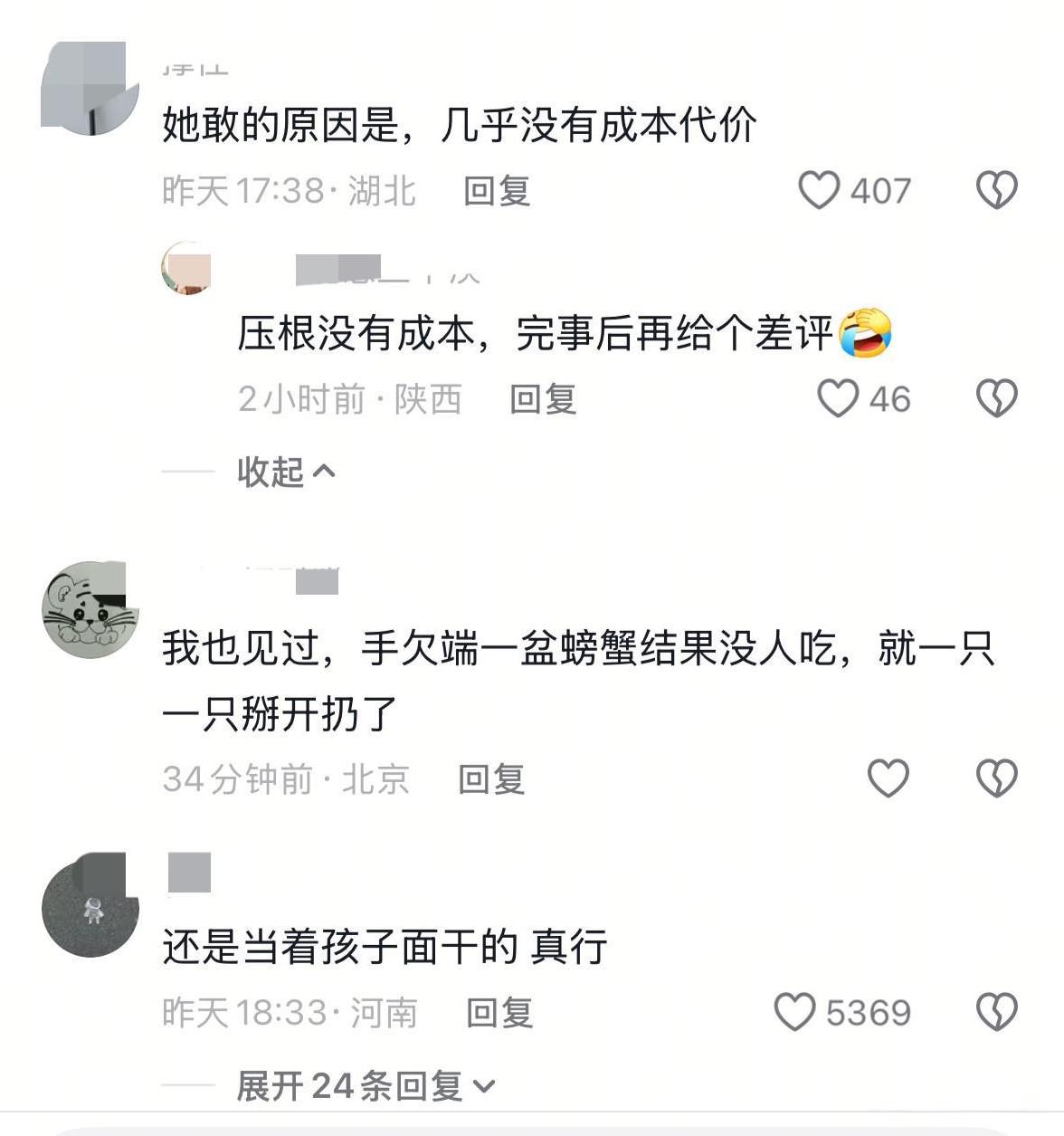 在西安捏碎二十多个鸡蛋的女人,已经不是第一回这么干了!之前在贵州,她就要求打包带走二十多个鸡蛋,被工作人员拒绝后,还找茬和人家吵架,并把鸡蛋捏碎。 一位网友在看到她的视频后,认出了她。 当时,网友在贵州旅游,与这名女子入住同一家酒店。因为她的所作所为,留给大家的印象很深,所以人家一眼就认出了她,毕竟这种人是屈指可数的。[打脸][打脸]只是万万没想到,她去了西安后,又故技重施。 她之所以做出这样的事,大概是因为几乎没有代价!只不过,这次人家酒店一方选择公开视频。 视频发酵以后,她的同事和村里人都看不下去了,纷纷曝光她的所作所为。 她的同事反馈她性格不太好相处,村里人则说她还很年轻才三十多岁,平日里就很喜欢把婆家的东西大包小包带回娘家。 她的身份被人认出以后,火速关闭了社交账户上的评论功能。现在,陌生人已经无法留言了! 自助餐不能打包,是大家都应遵守的共识!而她却一口气要带走二十几个鸡蛋,当不合理的要求没被满足后,就捏碎鸡蛋泄愤,实在是太过分了! 而值得一提的是,根据网友留言反馈的信息,她居然不是第一回这么干了,这才是更可怕的一点! 真的想不通,她能到处去旅游,按道理来说,家庭条件应该是不错的,再怎么说也不差几个鸡蛋的钱,怎么就一直喜欢占小便宜呢?[抠鼻][抠鼻]