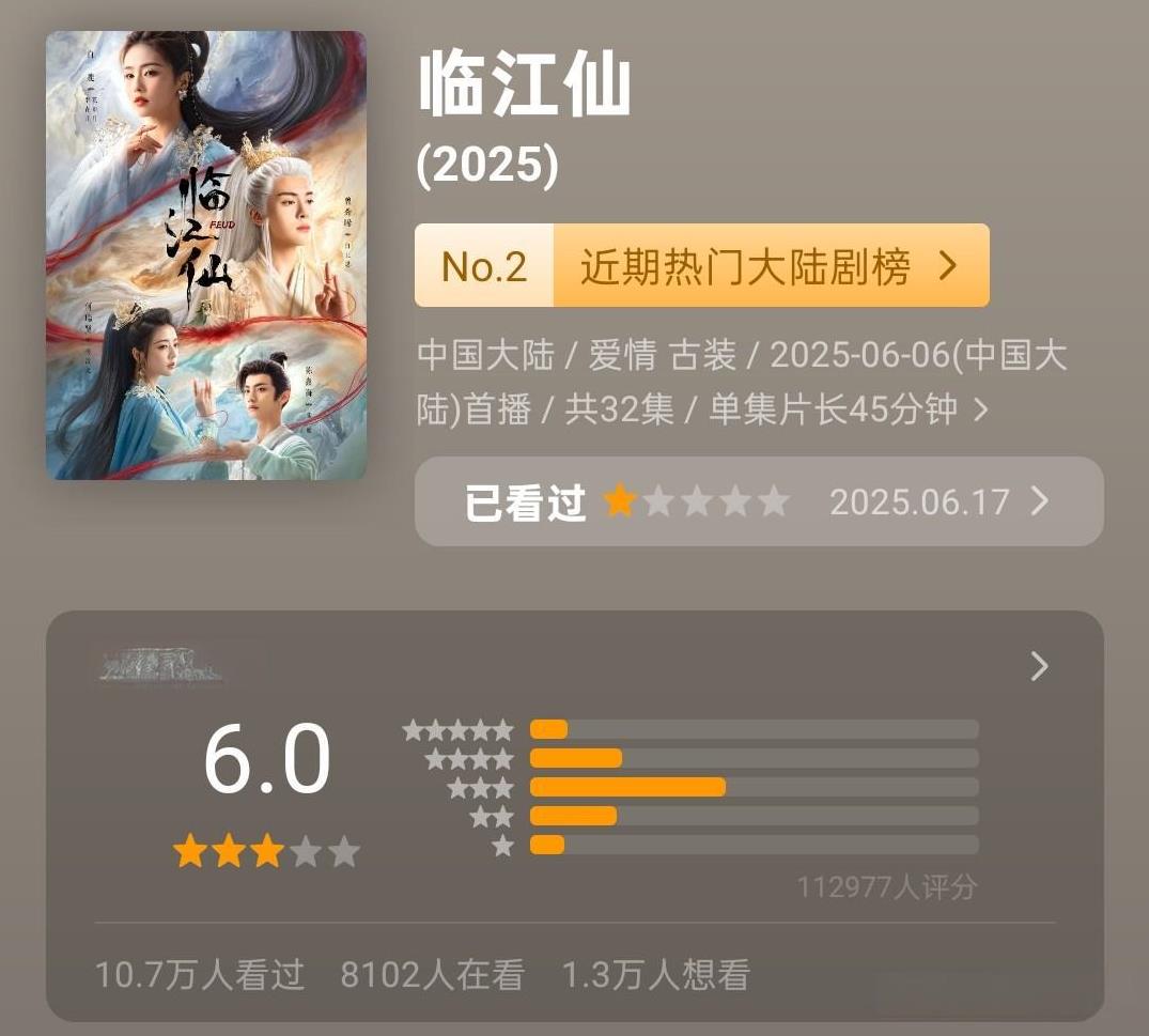 暑期档全网剧集正片播放量排名分别为《以法之名》《藏海传》《朝雪录》 暑期档网剧正片播放量排名分别为《朝雪录》《临江仙》《凡人修仙传》 从两个排行榜来看,《朝雪录》都是要碾压《临江仙》的,虽然后者在宣发上花费很大力气,于正亲自下场手撕,粉丝也活跃在各个平台怒怼差评,但在观众这里,管你流量多大,故事才是王道。 《朝雪录》豆瓣口碑6.3分,《临江仙》豆瓣口碑6分,0.3分的差距在哪里呢?我觉得应该就是故事和演技。前者以破案为主,谈情说爱只是辅助,且不存在喧宾夺主,后者以恋爱为主,工业糖精太多削弱故事主线。 白鹿演技目前为止仍没有进步,如果把她所有古偶剧摆在一起,你会发现复制粘贴的表演方式。如果想要跻身实力派,真的不能继续古偶剧里沉沦,多选择一下其他题材。至于李兰迪,大概是因为古偶剧拍的少,所以看着还比较新鲜。 无论如何,炒作热度永远无法取代故事打动人心,这个暑期档,于正维护《临江仙》的歇斯底里,终究是一场闹剧罢了。#秋日生活打卡季#