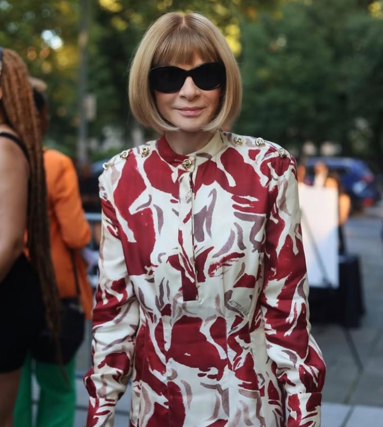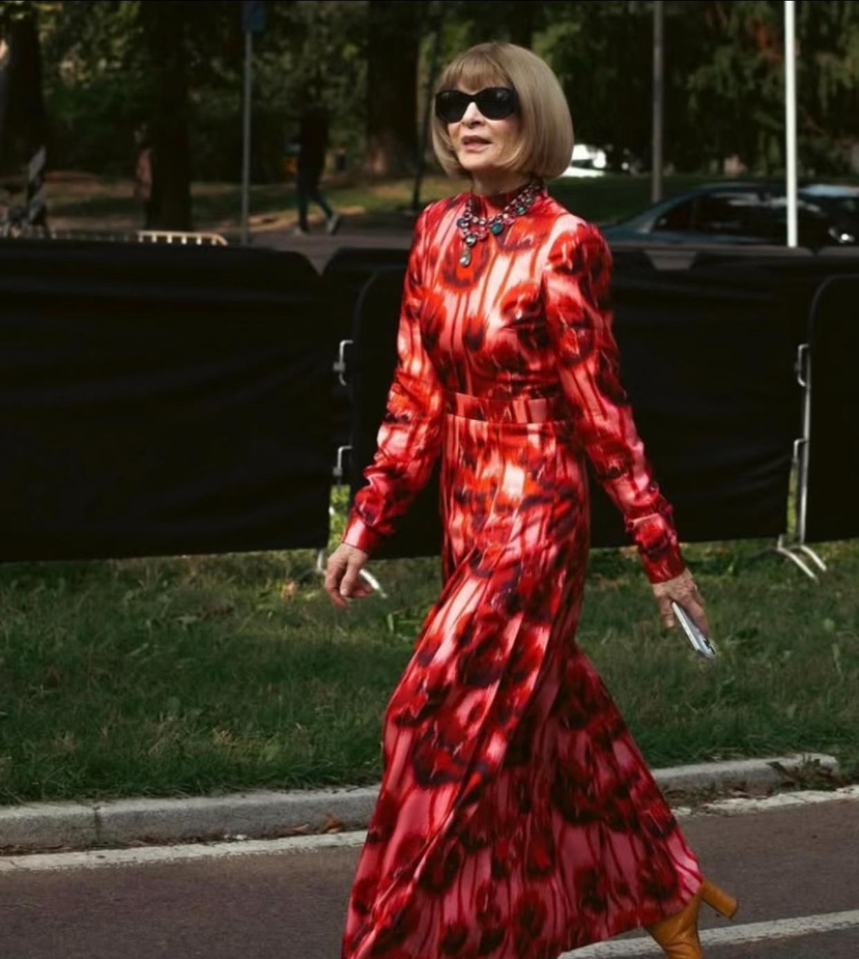 这么花这么艳的衣服也就时尚女魔头穿 一般人可不好掌控 穿不好就是雷区 75岁的安娜真是活力值爆棚