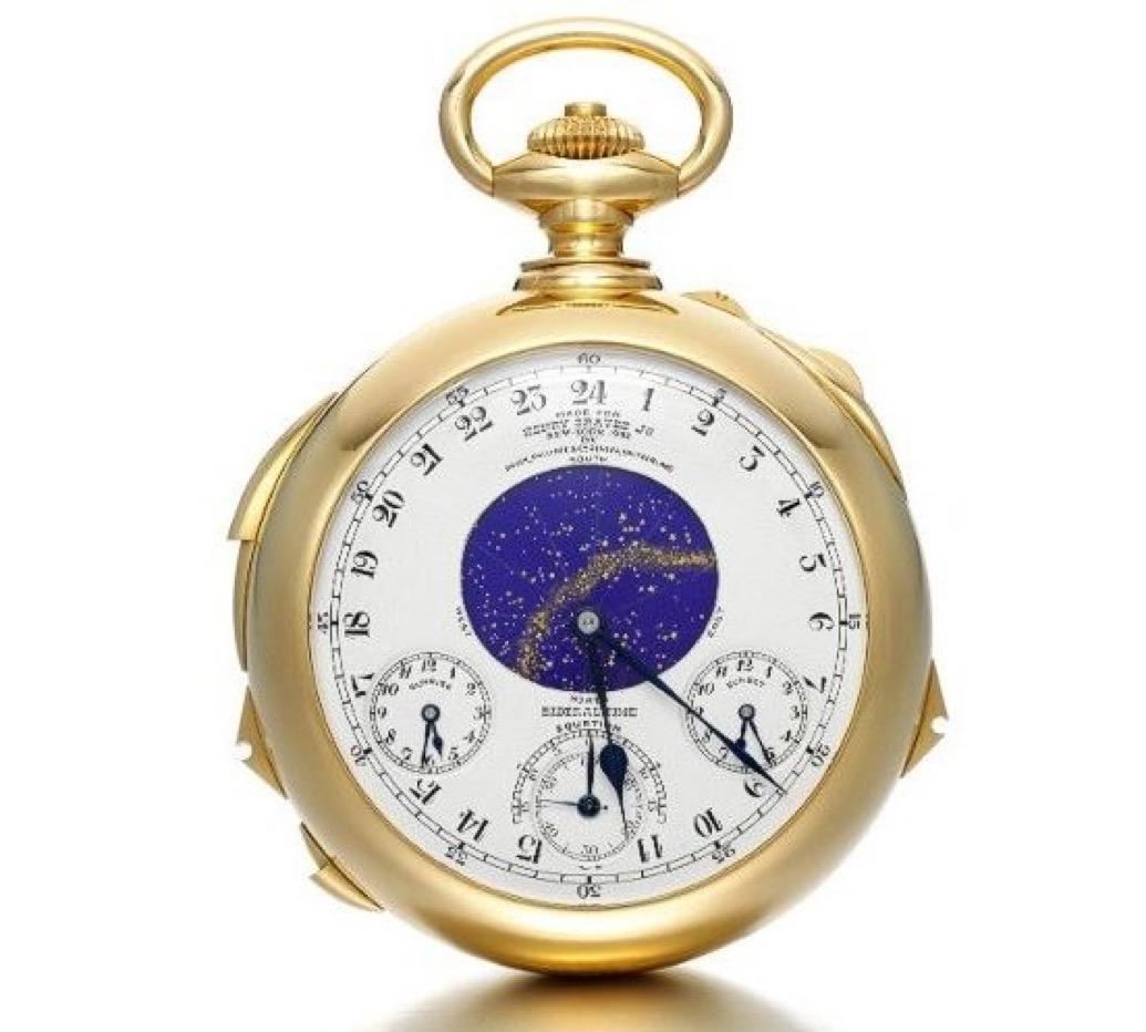 史上最贵的五块手表,个个超千万美元,其中,百达翡丽占了4个。 1.PATEK PHILIPPE GRANDMASTER CHIME 6300A-010 $3110万 最昂贵的手表是百达翡丽 Grandmaster Chime Ref. 6300A-010。 该款腕表于2019年11月9日在日内瓦的一场拍卖会上以3119万美元的价格购得。 2.PATEK PHILIPPE HENRY GRAVES 198.385 $2400万 第二块手表(怀表)是日内瓦百达翡丽公司生产的亨利·格雷夫斯超级复杂功能怀表,编号198.385,表壳编号416.769。 该腕表于 1925 年开始制作,1932 年完成,1933 年 1 月 19 日交付。其机芯独一无二,专为这款腕表设计,并配有 24 个机芯,堪称腕表中的杰作。 毫无疑问,它是当时最复杂的腕表,我有幸在日内瓦百达翡丽博物馆亲眼目睹了它。这是一款非凡的腕表,如同玛丽·安托瓦内特的怀表一样,无可替代。 3.ROLEX PAUL NEWMAN 6239 $1770万 赛车传奇人物吉姆·拉塞尔的劳力士迪通拿 6239“保罗·纽曼”腕表在拍卖会上拍出1770万美元,这块腕表可追溯至 1968 年左右,是市场上最热门的古董劳力士腕表的典范,这位赛车手兼教练佩戴了 50 年之久 4.PATEK PHILIPPE SONNERIE MINUTE REPEATER 6301A $1730万 百达翡丽的参考编号 6301A-010 是专为 Only Watch 筹款拍卖会打造的 Grande and Petite Sonnerie 三问报时腕表的独特钢制版本。 它采用 Rare Handcrafts 表盘,大明火蓝绿色珐琅下方饰有手工扭索纹漩涡图案,并饰有 12 颗长方形切割钻石时标。 手动上弦机芯 GS 36-750 PS IRM 由 703 个零件组成,在报时装置和跳时小秒针方面拥有专利创新。 规格包括直径 44.8 毫米、高度 12.03 毫米,以及带钢折叠扣的蓝绿色鳄鱼皮表带。 5.PATEK PHILIPPE STAINLESS STEEL 1518 $1110万 传奇不锈钢百达翡丽 Ref. 1518 重返拍卖会 菲利普斯将于今年 11 月在日内瓦举行的 Decade One 拍卖会上拍卖史上第一款镌刻有“数字 1”的百达翡丽 Ref. 1518 不锈钢腕表。 Ref. 1518腕表于1941年问世,是世界上首款万年历计时腕表。这款堪称“史上最佳”(GOAT)的腕表是仅有的四款精钢Ref. 1518腕表之一,于2016年创下纪录,以1180万美元的价格成交,成为当时拍卖会上售出的最昂贵的腕表。