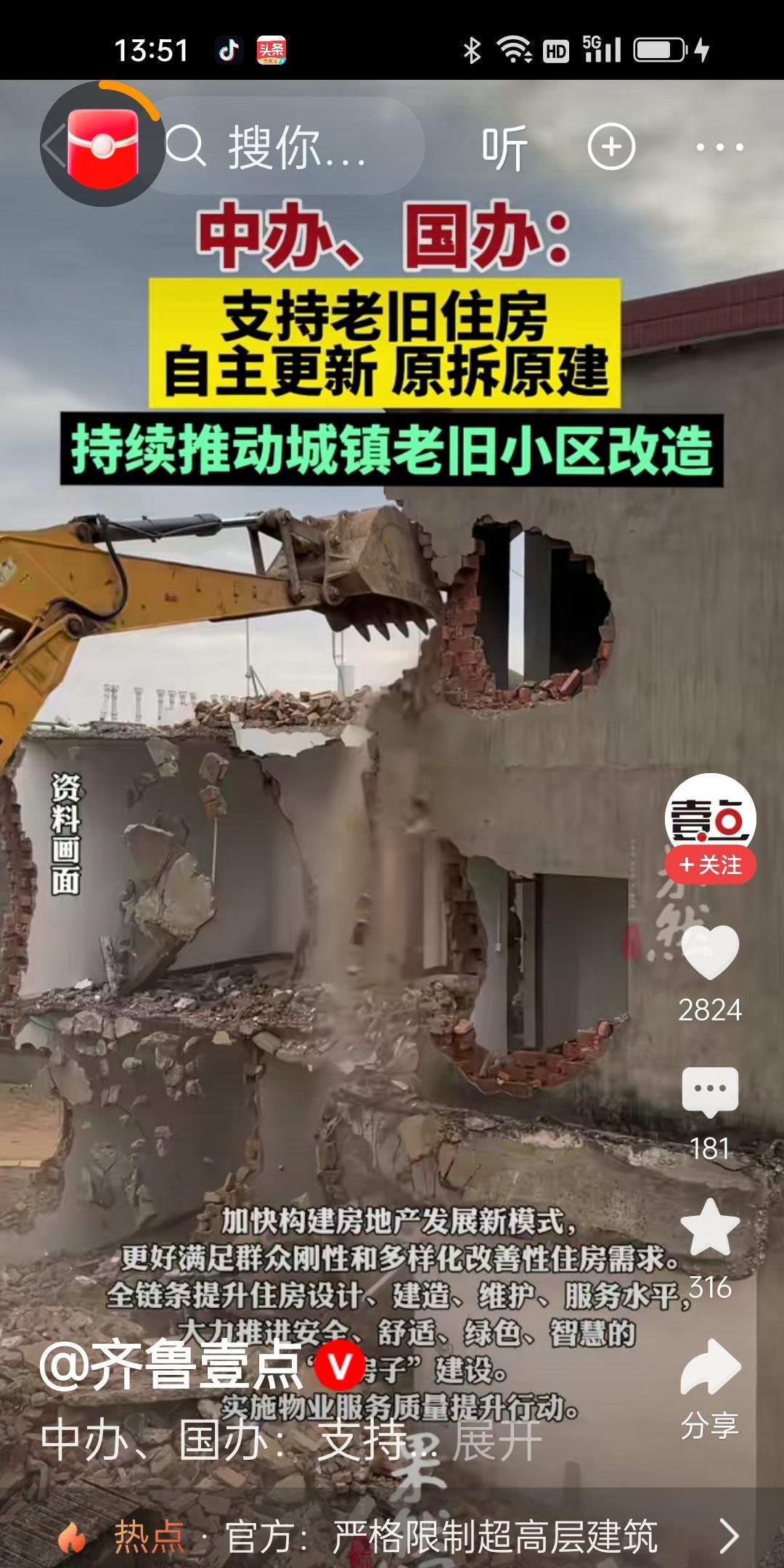 买房除了新房,二手房又多出一种选择——中办,国办有支持老旧住房,自主更新,原拆原建。 原拆原建明白,是在原地拆了旧楼,建新楼。 自主更新,是什么意思? 自己拆,自己盖? 那我们小区是六层,拆了是不是可以盖高层? 多出的楼层卖出去,是不是属于业主。 也许这就是一个想法,还需要一步步完善。 谁拆谁建,谁负责谁管理,怎样规划,如何分配不合理,都是一个漫长的过程。 还是那句话,着急,刚需就买,不着急就等,反正这房子也就这样了。