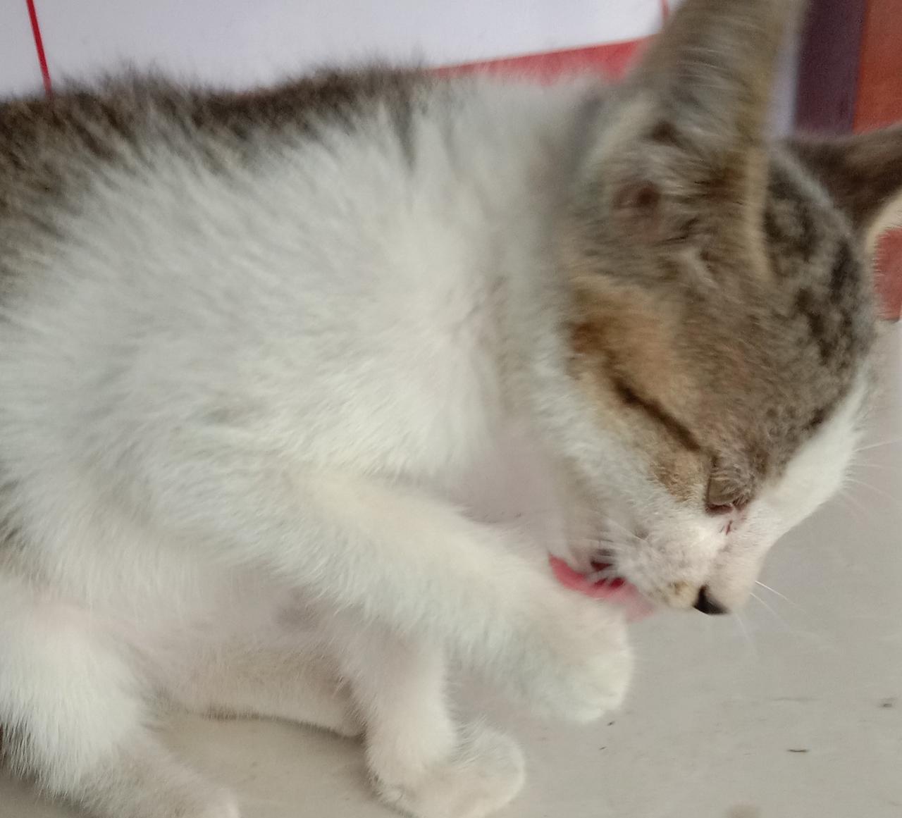 半个月之前,村部右侧的小巷里出现了一只小野猫,是我两个女儿发现的,当即就给这只小野猫买了香肠吃。 因为有之前喂小野猫的悲惨经历,这一次决定还是让他安安分分的待在这个小巷子里面。 给他准备了一个小纸箱子当做晚上睡觉的小窝,奈何这段时间总是下雨,还是特大暴雨的那种,小纸箱子很快被淋湿了。 喂了个把星期之后同事王见她可爱,把家里的猫粮带了一些给他吃,因为我总是拿家里的食物来给他吃,我婆婆总是说一些难听的话,所以我也从网上买了一些猫粮和鱼干。 以后我就不用从家里拿食物了,直接放在值班室,想喂的时候直接给他喂一点就行,这样也很方便。 我并不是那种十分喜欢小动物的人,可是看这只小猫实在是太小了,看到他喵喵喵的叫,总是让我想到我的孩子。 不能把它带回家,就把它放在村里的值班室吧。只要他乖乖的不要乱跑,就能保证他衣食无忧。 喂了有10来天,这只小猫总算是对我放下了戒备之心,会围着我喵喵喵的打转,我唤他,他也会滴溜溜的跑过来,吃饱了会自己玩,真的挺可爱的。