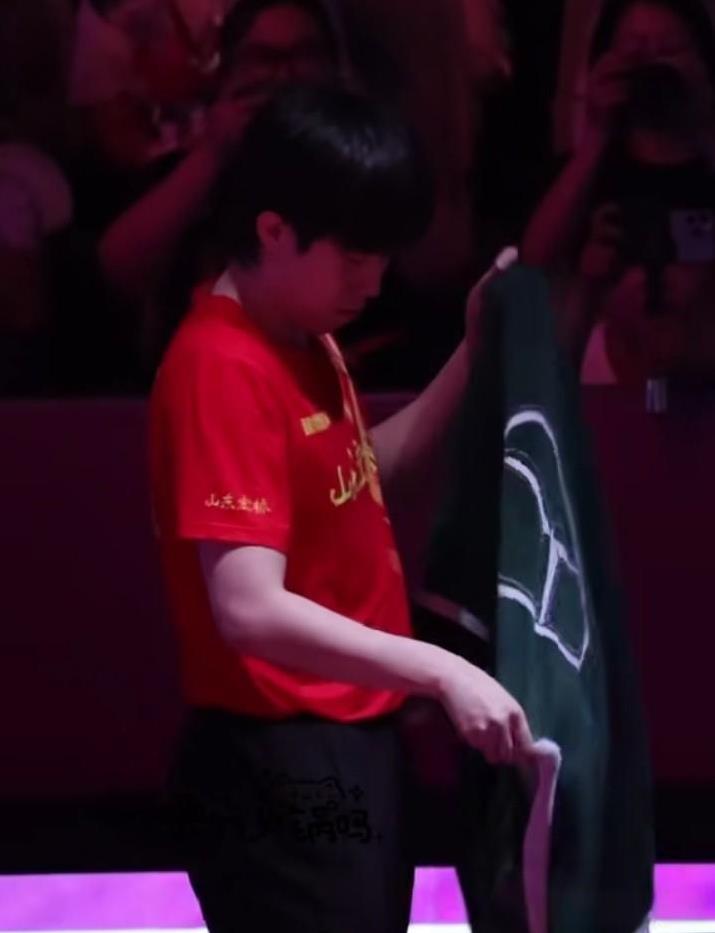 头哥的绿色大奔毛巾。今天上午的乒超联赛比赛现场,头哥拿了一条绿色的大奔毛巾,准确