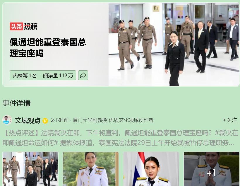 8月29日,泰国宪法法院将对总理佩通坦的命运投票。表面是审她“通话门”是否违宪,实则各方早已暗中交易完毕——王室、军方、财阀的算盘打得噼啪响。 军方突然改口支持她,边境冲突成了最佳借口。国防部一改强硬态度,明摆着需要他信家族的政治资源灭火。王室更是悄悄递台阶,不仅让她兼任文化部长,国宴时还特意安排她坐在王室成员旁边。就连农民都举牌力挺:“我们要实干家!”——草根票仓稳了,反对党闹再凶也没用。 但别以为这是“正义胜利”。法官手里的不是法律条文,而是计算器:判她无罪,保守派后续还能用贪腐调查拿捏她;判她违宪,政局立马乱套,谁都不敢担这责任。说白了,留着她比废掉她更“划算”。 他信家族和保守派的塑料联盟早就裂了。他信去年回国时风光特赦,今年突然被控“大不敬”;赛塔火速下台,佩通坦却还能挣扎——这就是警告:听话才能活。更讽刺的是,为泰党当初打着改革旗号上台,如今却靠军方保驾,草根选民心都凉了。 这场裁决根本不是司法,而是免责声明。佩通坦九成能复职,但曼谷权力场从没有赢家——今天你是棋子,明天可能就变弃子。悬念只剩:保守派什么时候会掀桌?#佩通坦能重登泰国总理宝座吗#