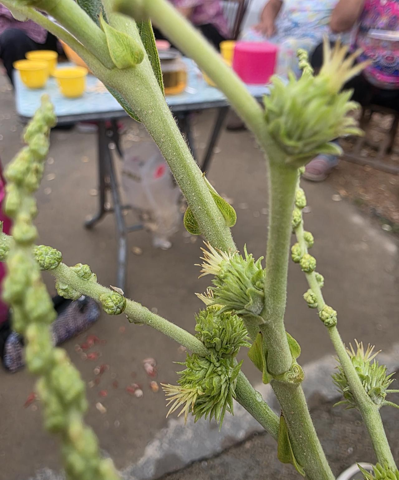 大家认识这个东西吗?别说城里的朋友,乡村朋友也未必知道…… 下午正跟嫂子、婶子和奶奶们聊天,一个乡邻从山上回来,带来这个东西。他说:“我去看看今年长得怎么样,能不能摘,看来够呛,这是第三次开花。” 我接过枝子看了看,他告诉我这是什么东西。这东西虽然常吃,但他如果不说,我还真不认识。 我有些忘本了,很多农作物,我也叫不上名字,之前四十年,眼前只有鼠标、键盘、显示屏、主机,只有会议室、办公室、打印机、文件夹、会议材料、笔记本、签字笔,回到村里后,除了传统的农作物,很多新的农作物需要好好认识。 朋友们,你们认识这东西吗?你可能吃过,但未必见过它的小时候。提示一下,它长大后是一种坚果,人们常吃。