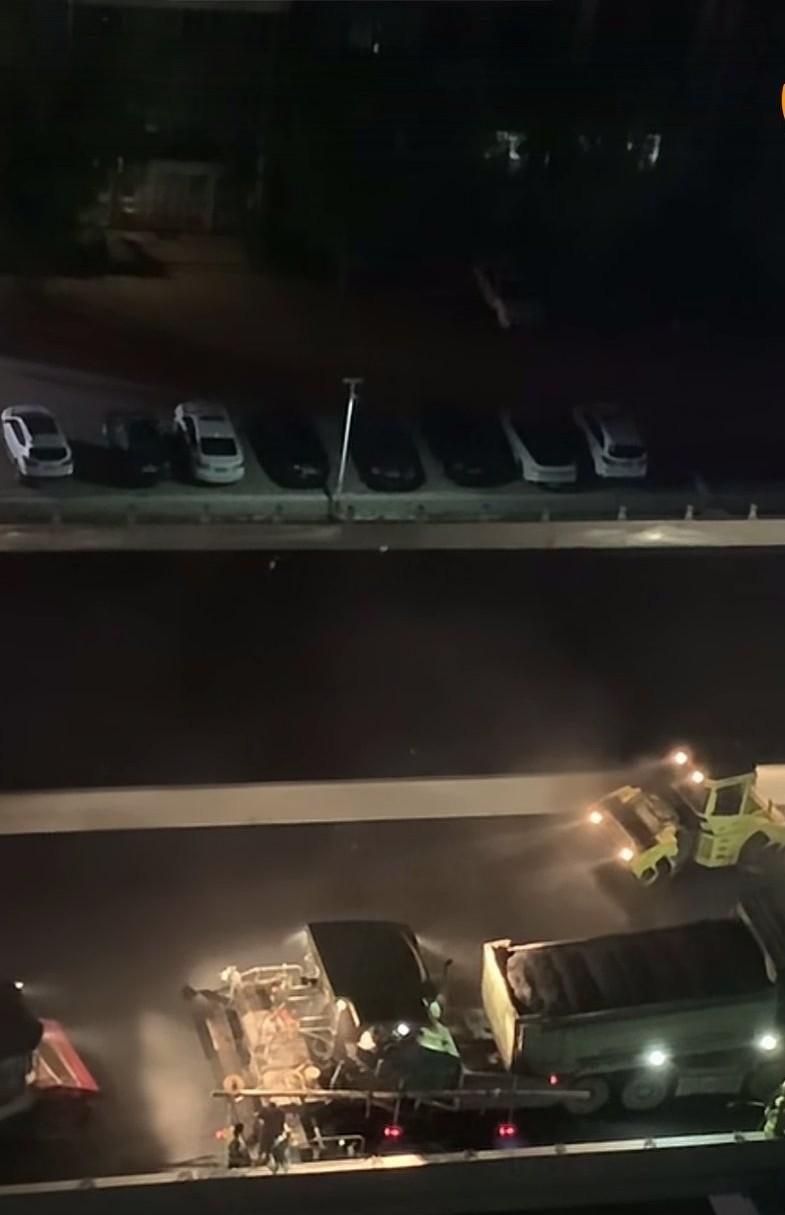 路过石家庄市和平路高架桥,发现这儿正干得热火朝天呢!原来在铺第二茬沥青,而且夜车不停,施工队争分夺秒地干。施工范围从东落地点一直到谈固大街东侧。 大晚上路过的时候,能看到工人们忙碌的身影,灯光把工地照得亮堂堂的。这争分夺秒的架势,一看就是想尽快完工。和平路高架桥改造工程对城市交通意义重大,等修好了,通行肯定更顺畅。真心向这些建设者们致敬,他们辛苦付出,让我们的城市变得越来越好!