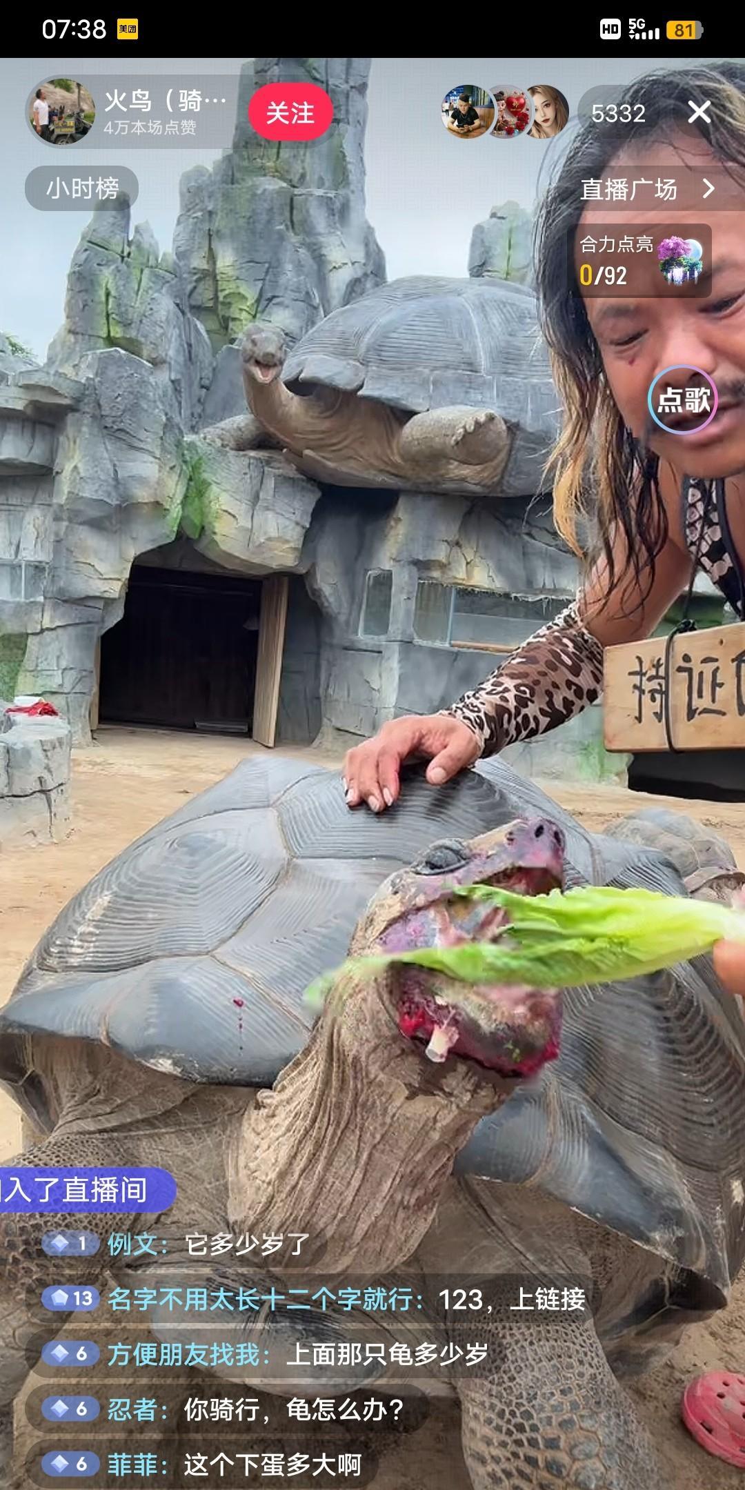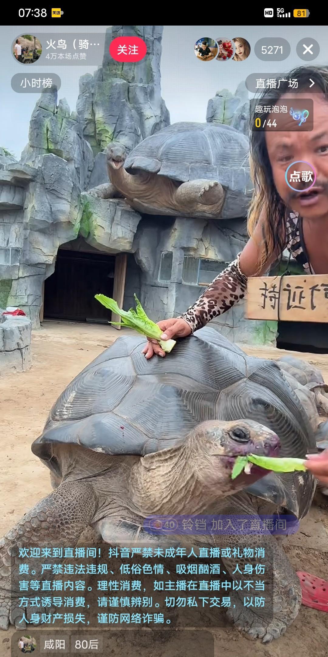 大龟助力主播挣米,大哥打赏图啥子。 今天在直播间看到有一个主播用一个超级大龟作为