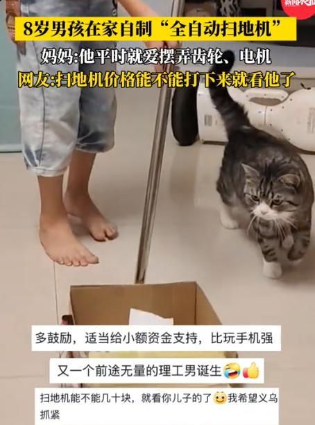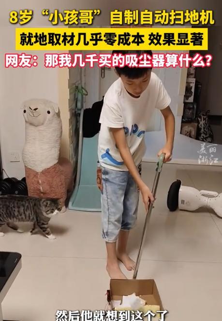 “强的可怕!”河北,8岁小男孩看妈打扫卫生很辛苦,于是灵机一动,就用纸片做了一个自动扫地机,成本几乎为零,没想到效果还挺好,妈妈很高兴,说孩子学编程,平时玩乐高,很快就能拼好,网友:比天天拿手机玩游戏强多了! 据美丽浙江8月27日报道,河北保定一个8岁小男孩火了!他看到妈妈每天弯腰扫地辛苦,就自己动手做了台自动扫地机。材料简单,几乎零成本,效果却出乎意料。 小男孩从小就喜欢动手做各种手工,也爱拼乐高积木,每次都能把复杂造型拼出来,这让他动手能力和空间思维都很强。 而且,他还学了编程,不仅锻炼逻辑思维,也激发了他对机械和电子的兴趣。 那天,他看到妈妈又在累得直不起腰地扫地,心里很不是滋味。突然灵机一动,想着自己能不能做个自动扫地机帮妈妈分担一下。 他开始翻家里的废旧物品:用一个纸盒做机身,瓶盖加小木棍做轮子,用之前编程机器人剩下的小电机和电池盒做动力,再把家里的旧牙刷拆开,固定在前面当扫把。 经过一番捣鼓,他的扫地机终于完成了。 按下开关,小机器慢慢移动,前面的“扫帚”把地上的碎纸屑和小垃圾一扫而光。 小男孩自己都惊呆了,妈妈看着儿子又惊又喜,没想到他既有创意又贴心。 视频发到网上后,引起网友热议。 有的说:“这孩子动手能力太强了,我家孩子天天抱着手机玩游戏,真得向他学学。” 还有人调侃:“我花好几千买的扫地机瞬间不香了,这小孩性价比太高!”大家纷纷为他点赞,不仅孝顺,还能把学到的知识用到生活里。 小男孩平时爱动手、爱思考,科学课是他的最爱,玩乐高和学编程的经历,让他积累了知识,也培养了解决问题的能力。 这次自制扫地机,就是他把理论和实践结合的成果。 多鼓励孩子动手实践,发挥创造力,像小男孩这样,不仅能学知识,还能锻炼解决问题的能力,说不定,下一个小发明家就出现在你家孩子身上! 对此你怎么看? 信源:美丽浙江