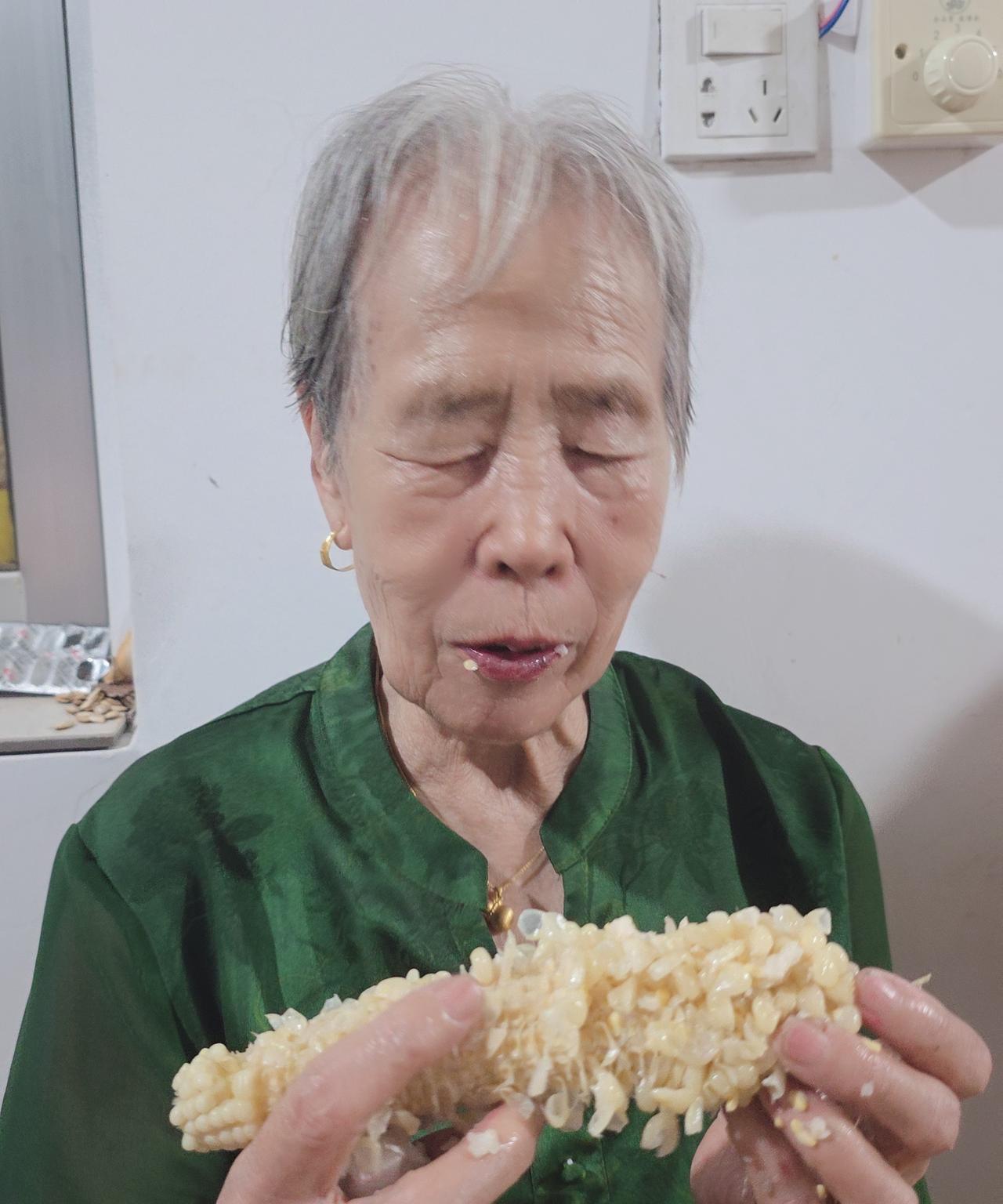 我跟老娘说的话,其实也是说给自己的…… 明明啃不动了,可就是喜欢啃。回村这18天,老娘啃了有40根玉米。今晚好几个人看着她啃,看得有些不好意思了。 门牙本来就稀,再加上有两个活动的,就连很嫩的玉米都啃不干净,还拿出来让我们看看。我说别啃玉米了,吃馒头吧。她老人家说一定要啃到底,这没有办法,那就由她啃吧,世间山水抵不过热爱,喜欢,这是最大的动力。 到今天回村18天了,再有3天,8月过完。本应该回青岛陪外孙进入新学年,但由于身体和心情的原因,今年不想回去了。我想女儿女婿和外孙都能体谅。 有一个事实我不得不承认,在村里的日子,每天与乡亲们在一起的说说笑笑、欢欢乐乐,极大地排解了我内心的凄冷,所以每天下午街头的娱乐,很大程度上温暖了我的心灵,我借此缓解着自己的抑郁。我时常跟老娘说:”到人多的地方去,到欢乐的地方去,到有笑声和歌声的地方去。”