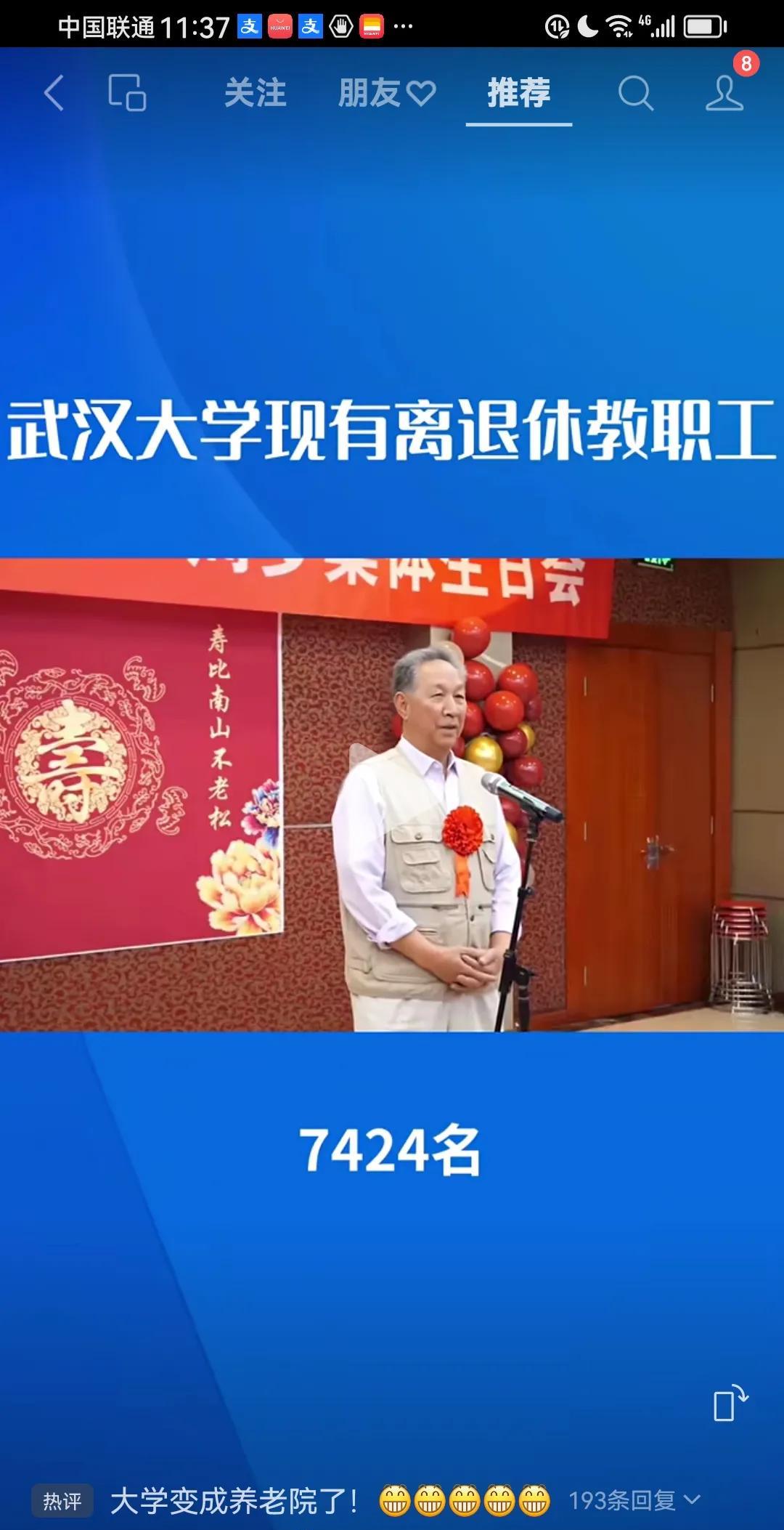 武汉大学,现有退休人员7424名! 网上报道,武汉大学现有退休人员7
