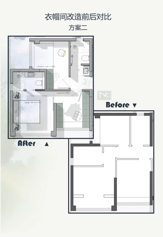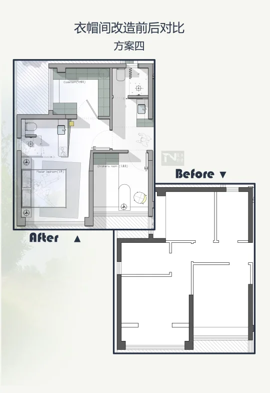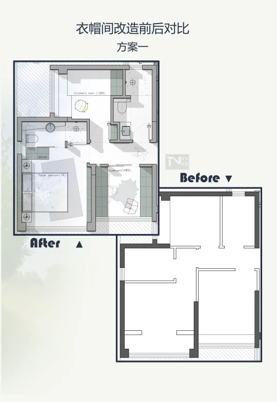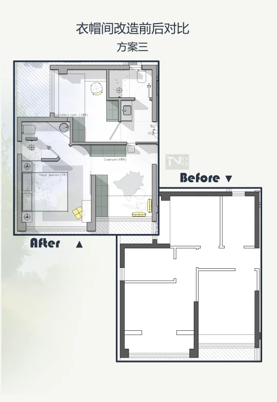 明确核心需求!我们就是想要大卧室+衣帽间,果断舍弃不常用的房间。