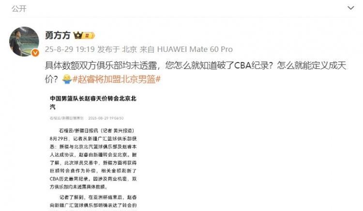 赵睿加盟北京男篮,欢迎的“村里人”特别多,北京媒体人纠缠“天价转会费”贼矫情 赵