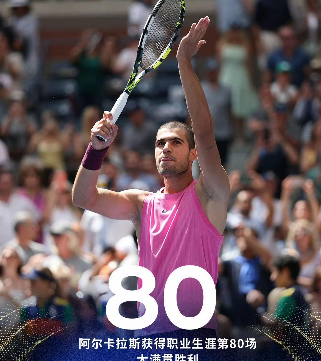哪个数据更伟大?辛纳24岁、阿卡仅22岁。 辛纳面包房开业:在职业巡回赛完成100盘6-0或6-1的胜利。 阿尔卡拉斯迎来职业生涯第80场大满贯胜利。