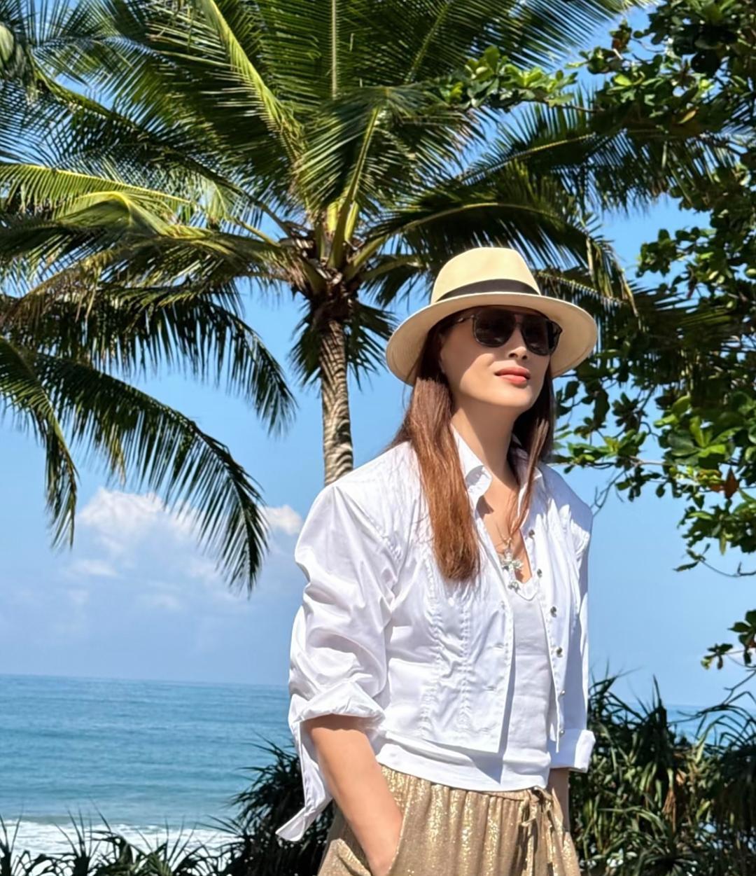 任达华和超模老婆一起到海边度假庆祝七夕情人节,琦琦都已经58岁了,看起来好年轻,