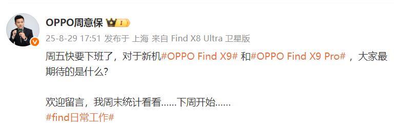 vivo、OPPO兄弟是商量好的吗? 1、周意保预示下周OPPOFindX9