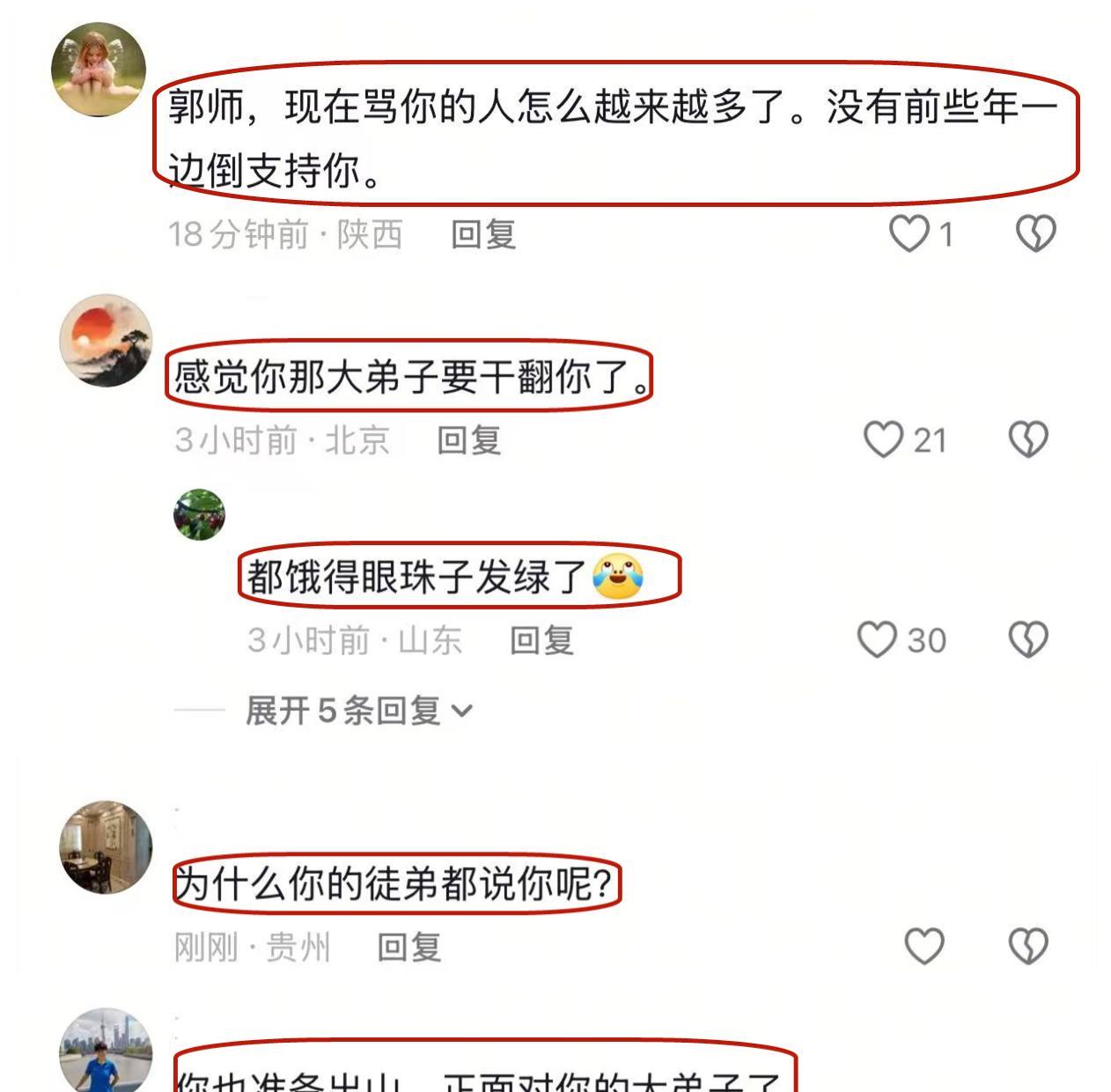 郭德纲深夜发布一段视频,有句话,郭德纲是这么说的,“人生的最高境界,是要让对方,在你的节奏里边迷路”。 这句耐人寻味的话,让不明所以的网友费解,老郭这又隐喻什么事呢?是谁又招惹郭德纲了呢?从留言不难看出,还是有网友对事情的来龙去脉了解的,在评论区不断提醒郭德纲,希望郭德纲注意,给个回应。 直播带货当天,郭德纲前大徒弟闫宗海也直播。闫宗海当时喊话,希望郭德纲直播结束,看看他的关注列表。之后,郭德纲的关注人从700多变成100多。郭德纲的配合,让闫宗海都费解了,更别提网友了。于是,闫宗海在直播间又分享了一些干货。面对这些,郭德纲也是要有回应的。于是,就有了这段话。