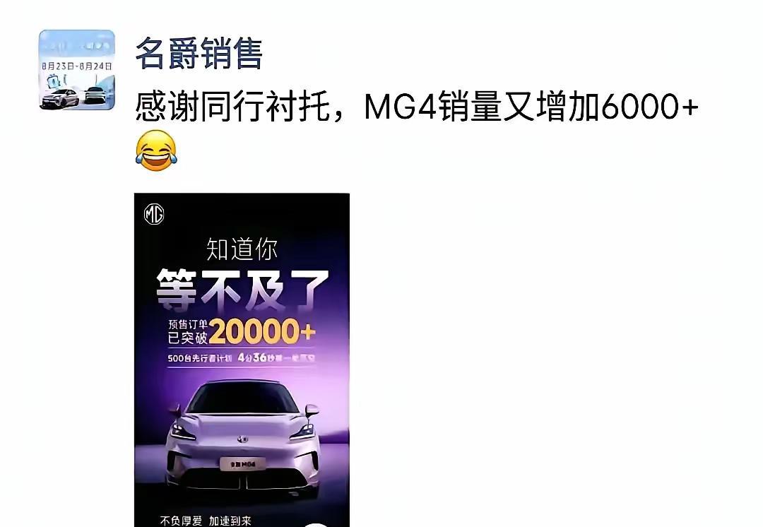 【一个北汽,一个上汽,比你多1辆,你说多卷吧!】 本届车展,这两个车型针尖对麦芒,一个是MG4 一个是极狐T1。 MG4 上市6.58万起, 极狐T1预售 6.88万起。价格很有针对性。结果就连海报都打起来了! MG4 发了一个海报11607辆, 极狐也发了一个海报11608辆。就是比你多一辆! 结果MG再发一个海报2万+,把极狐甩开。【来自懂车帝车友圈】