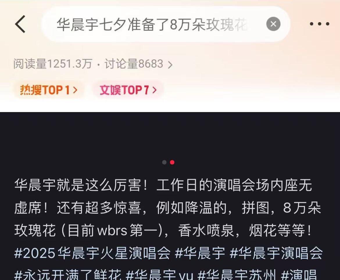 七夕热搜登顶!华晨宇当之无愧制造浪漫第一名!七夕准备8万朵玫瑰花铺满演唱会现场!