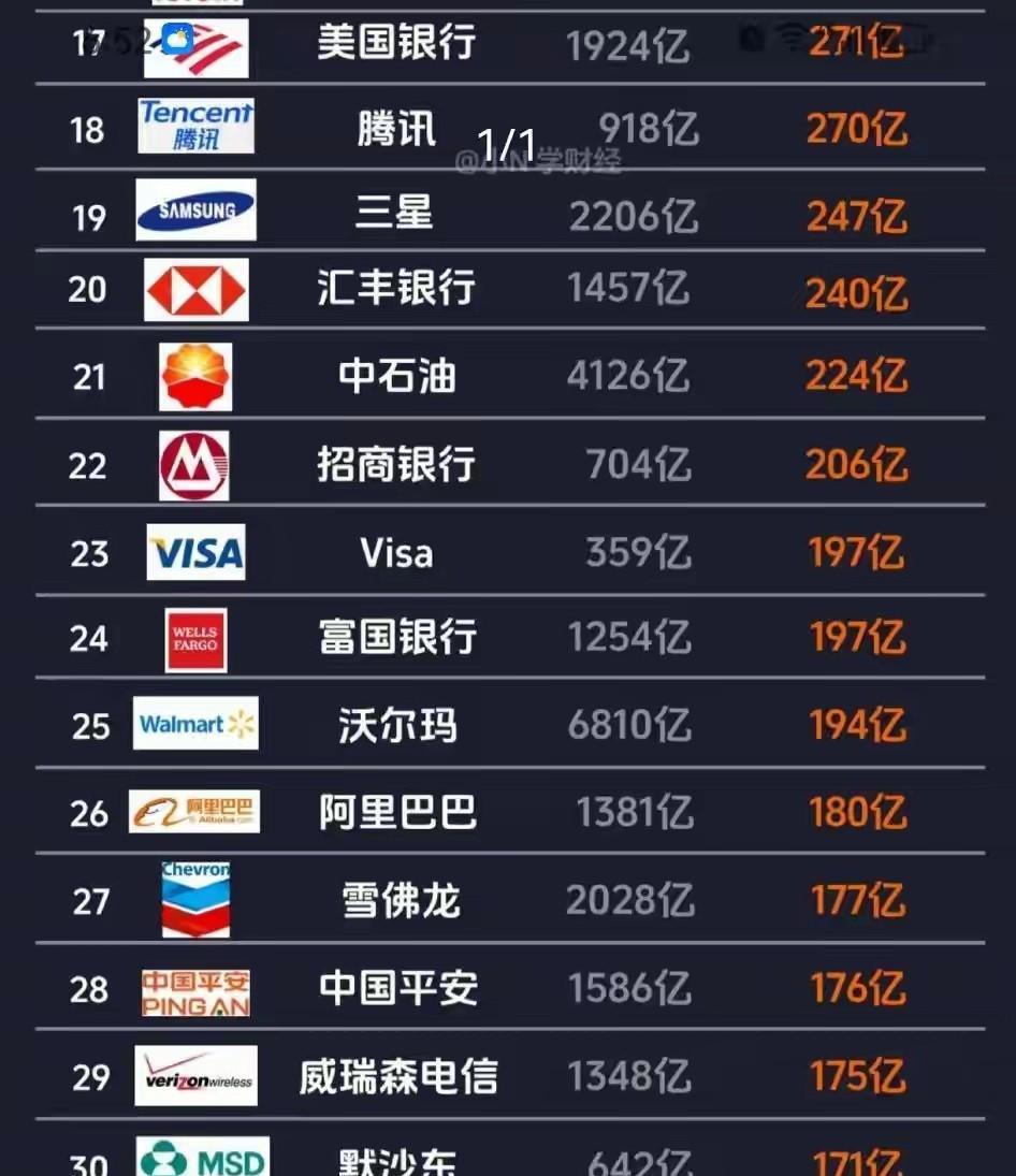 全球最赚钱公司排行榜,我眼睛都看花了,才找到我们中国的。