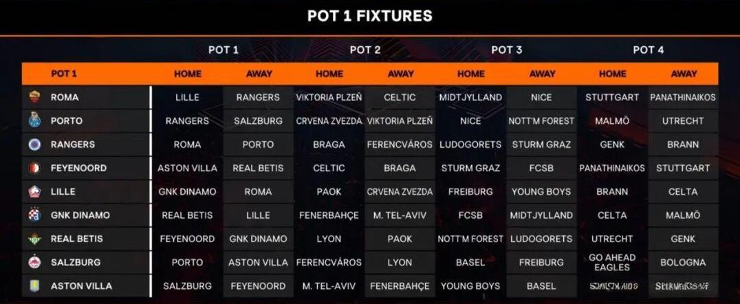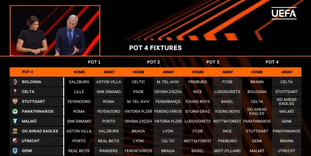 2025-2026赛季欧联杯抽签结果:罗马迎战流浪者与凯尔特人,博洛尼亚重逢阿斯