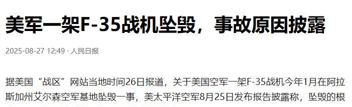 中方在阿拉斯加获喜讯,美军F35坠海原因曝光:5艘中方船只稳了! 今年1月28日那天,阿拉斯加埃尔森空军基地的雪还没化透,一架价值近2亿美元的F-35A战机刚升空没多久,就直直地砸向地面,好在飞行员反应快,弹出座舱时只受了点轻伤,但那架号称全球最先进的隐形战机,当场就成了一堆冒着烟的废铁。 半年多后,美军太平洋空军在8月25日甩出的调查报告,把这起离奇事故的谜底彻底揭开了。说出来你可能不信,这么金贵的战机栽跟头,居然是因为液压油里混进了不该有的水。 就这么点看似不起眼的水污染,在阿拉斯加的严寒里变成了致命杀手——水在液压油管里冻成了冰疙瘩,死死卡住了起落架的支柱,让它没法完全伸展开。 更要命的是起落架上的传感器被这冰疙瘩骗了,误以为飞机已经稳稳落在地面,直接给飞行控制系统发了“落地”信号。结果就是,飞机还在半空中呢,系统就自作主张切换到了着陆模式,最后失控坠毁成了必然。 这起事故里藏着的问题可不止是技术缺陷那么简单。调查报告里悄悄提了一嘴,机组人员在飞行中开电话会议分心,地勤维护时没按规程检查液压设备,甚至连危险材料管理都乱糟糟的。 这些细节堆在一起,把美军装备管理的漏洞暴露得明明白白。要知道,这架F-35A价值1.965亿美元,够买几十架普通战机了,就因为这点本可避免的小问题摔得粉碎,美军心疼得直抽抽。 更头疼的是事故后整个F-35机群都得停飞排查,光是更换液压系统、校准传感器的活儿,就够维修人员忙到明年开春,短期内根本腾不出精力管别的事。 就在美军忙着给F-35机群“体检”的时候,咱们的五艘科考船正浩浩荡荡地穿过白令海峡,直奔阿拉斯加附近海域。 这可不是普通的船队,说是“移动的极地实验室群”都不为过——雪龙2号打头阵破冰开道,深海1号带着蛟龙号随时准备下潜,极地号和中山大学极地号各司其职,探索3号殿后保障,五艘船分工明确,硬是在北极圈里摆出了咱们史上最大规模的科考阵势。 打头的雪龙2号是老资格了,作为咱们自主建造的极地破冰船,它那双向破冰的本事在北极冰原上特别管用,前面的冰结得再厚,它倒着开都能撞出一条路来。 跟在后面的深海1号更不简单,这船是蛟龙号的“专属座驾”,船上装着全套深潜支持设备,30吨的A型架一吊,就能把蛟龙号稳稳放进海里,就算在3000多米深的海底,也能精准取样、拍摄高清影像。这次它跟着来北极,就是要探探北冰洋深海里的热液喷口和生物群落,这些数据在全世界都是宝贝。 最有特色的要数中山大学极地号,这是咱们高校里第一艘破冰船,别看它是改造过的“老船”,本事可不小。船身设计得灵巧,在2.2米厚的冰层里也能穿梭自如,船上装着探冰雷达、海洋磁力仪这些“高精尖”设备,连大气成分、海冰温度都能精准测量。 更有意思的是船上不光有科学家,还有历史学者和医学生,搞起了跨学科研究,连考察船上的日常生活都成了研究素材,这种“边科考边教学”的模式,在北极科考史上还是头一遭。 这五艘船凑在一起,可不是来旅游的。北极冰层融化得一年比一年快,新的航道和资源都露出来了,谁先摸清这里的气候、地质和生态情况,谁就掌握了话语权。咱们的船队这次带着明确的目标:测海冰变化、探海底地形、采生物样本,这些数据不管是对研究全球气候变化,还是未来开发北极资源,都太重要了。 面对咱们五艘船在阿拉斯加附近海域开展科考,以往总爱“刷存在感”的美国海岸警卫队和五角大楼,这次却异常安静。不是他们转性了,实在是F-35坠机的烂摊子还没收拾完,根本没底气来找茬。 美军现在正焦头烂额呢。事故报告一出来,整个F-35机群都得重新检查液压系统,光是更换受污染的液压油、校准传感器,就得耗费大量人力物力。 所以说,这次咱们的科考船能安安稳稳在北极开展工作,美军的“放任不管”确实帮了忙,但根本原因还是咱们自己有实力、有底气。五艘船组成的“硬核阵容”,既是科研能力的体现,也是国家实力的展示。 等咱们的科考队把数据带回来,不管是对北极生态研究,还是未来参与北极治理,都能掌握更多主动权。而美军呢,估计还得在F-35的维修车间和听证会之间来回奔波,短期内想在北极找咱们的麻烦,怕是心有余而力不足了。